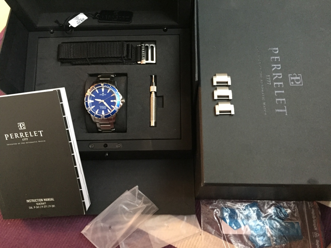 Браслет из нержавеющей стали с запатентованным Perrelet расширителем под гидрокостюм.