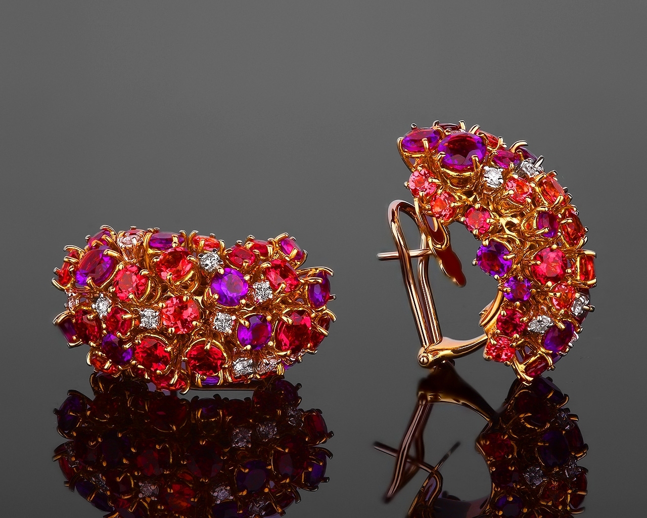 Представляем вашему вниманию коктейльные золотые серьги с бриллиантами 0.35ct и цветными камнями от всемирно известного бренда Alfieri&St.John из коллекции Cocktail.