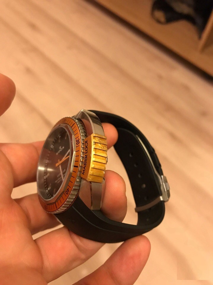 В продаже часы Edox Hydro Sub, небольшой косячек погнутый ползунок (видно на фото) на ход часов никак не повлияло, работают так же идеально как и работали