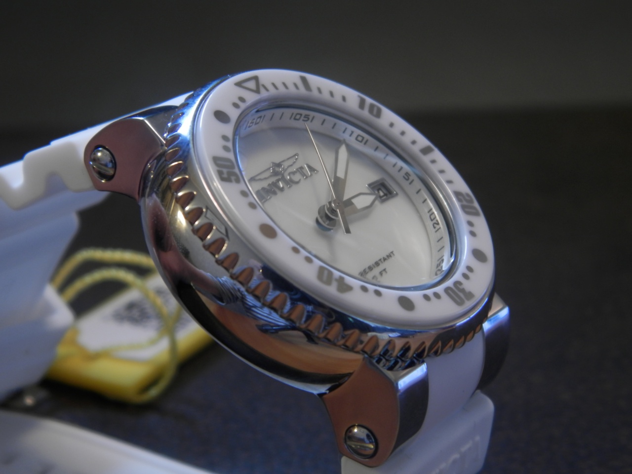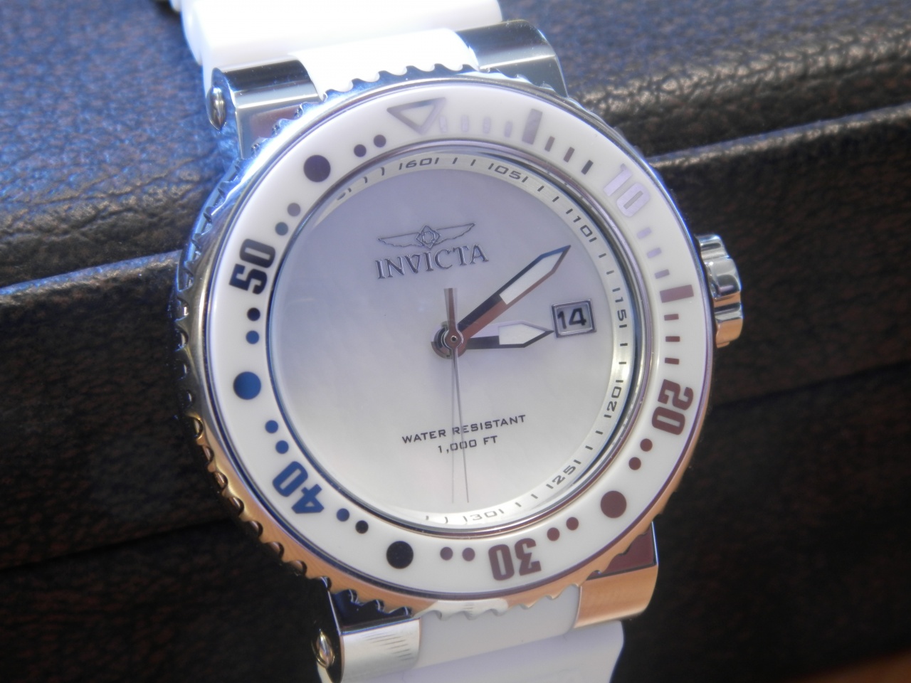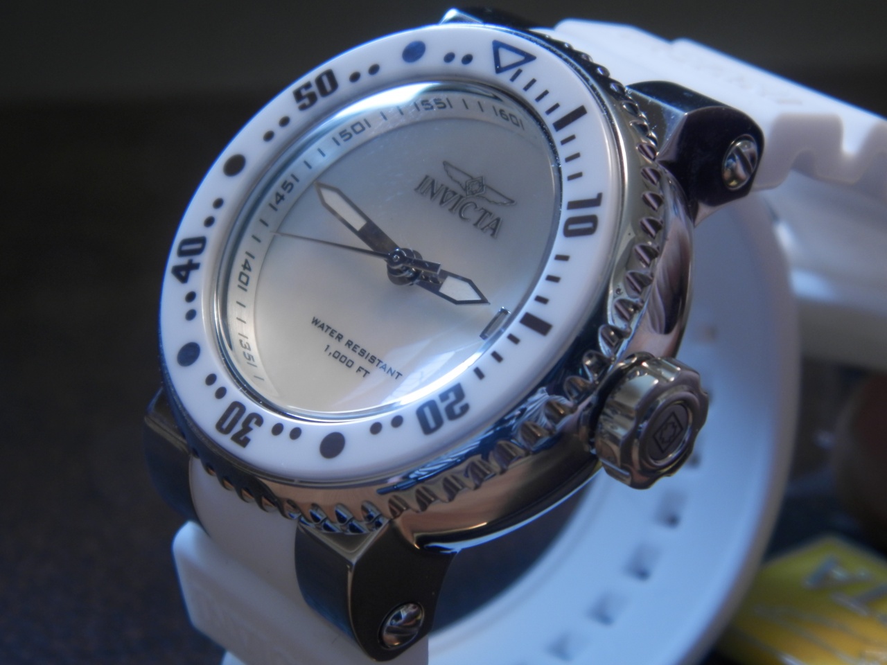 Жен. Invicta Pro Diver ,перламутровый циферблат,керамический безель, 40 мм, 300M,белый силикон