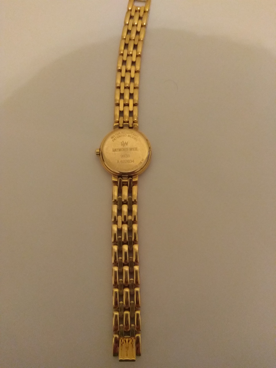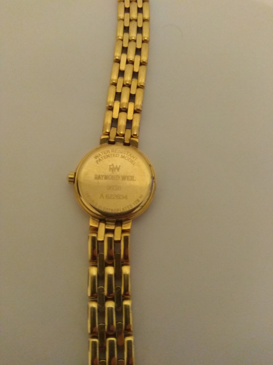 Супруге родственница отдала свои часы, на 99% оригинальные из Швейцарии. Марка часов - Raymond Weil. На задней стороне часов написано - Water Resistant, Patented Model, и есть цифры - 9938, A622634. Внизу написано 18K Gold Electroplated 10М. Часы золотого цвета, на циферблате написано Raimond Weil Genewe, Swiss. Приблизительно были куплены 15 лет назад.