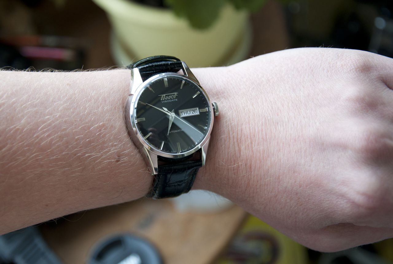 Единственно что надо привыкать к большему диаметру (мои старые T65 и Полет гораздо уже), и к довольно жесткому кожаному ремешку. Но оно того стоит