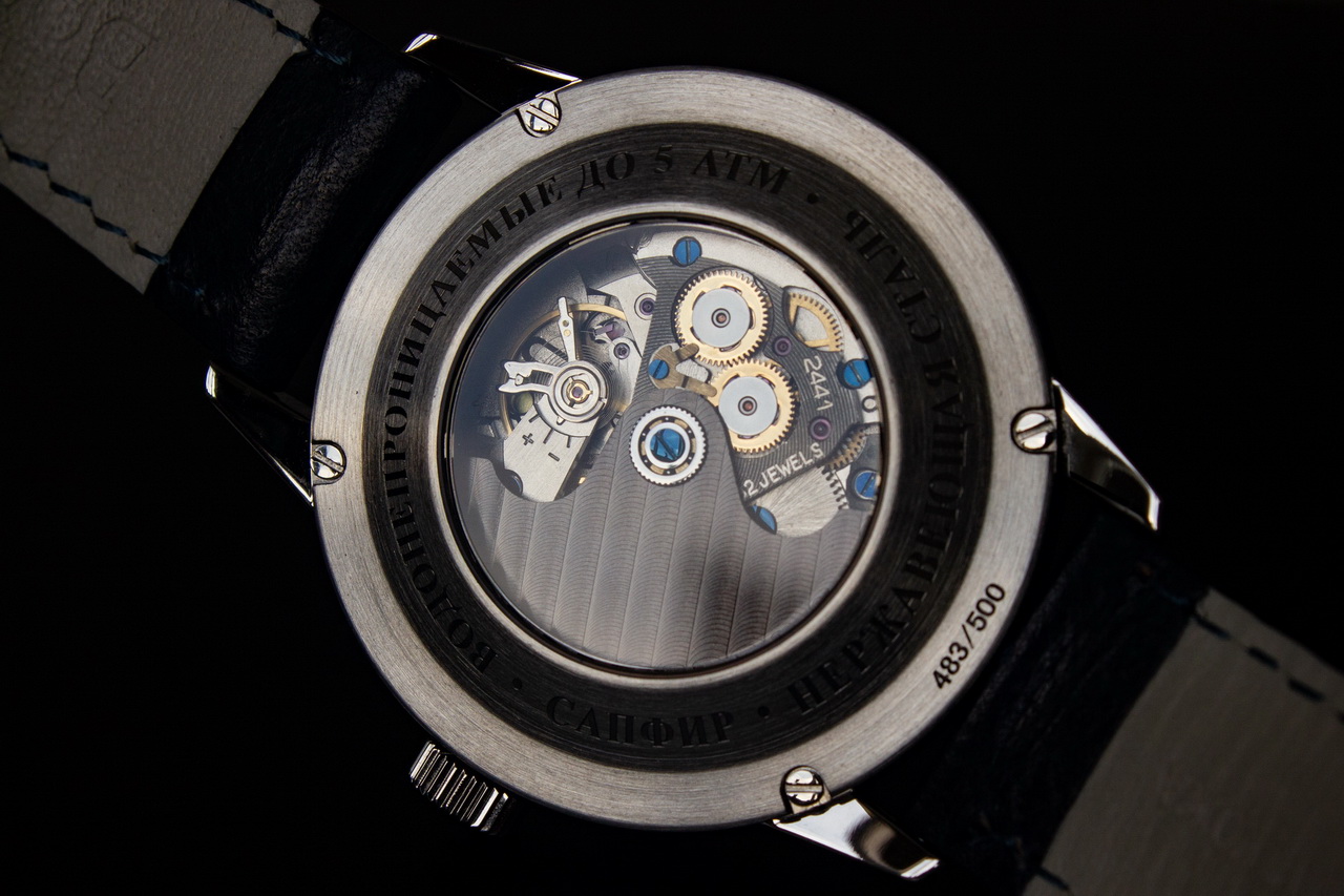 1. Стекло. Я готов был бы прилично переплатить, если бы в них поставили стекло с двойным антибликом, таким, чтоб этого стекла вообще было не видно. Ведь согласитесь, что сделав такой интересный циферблат и воткнуть туда обычное сапфировое стекло, ну это какое-то издевательство!