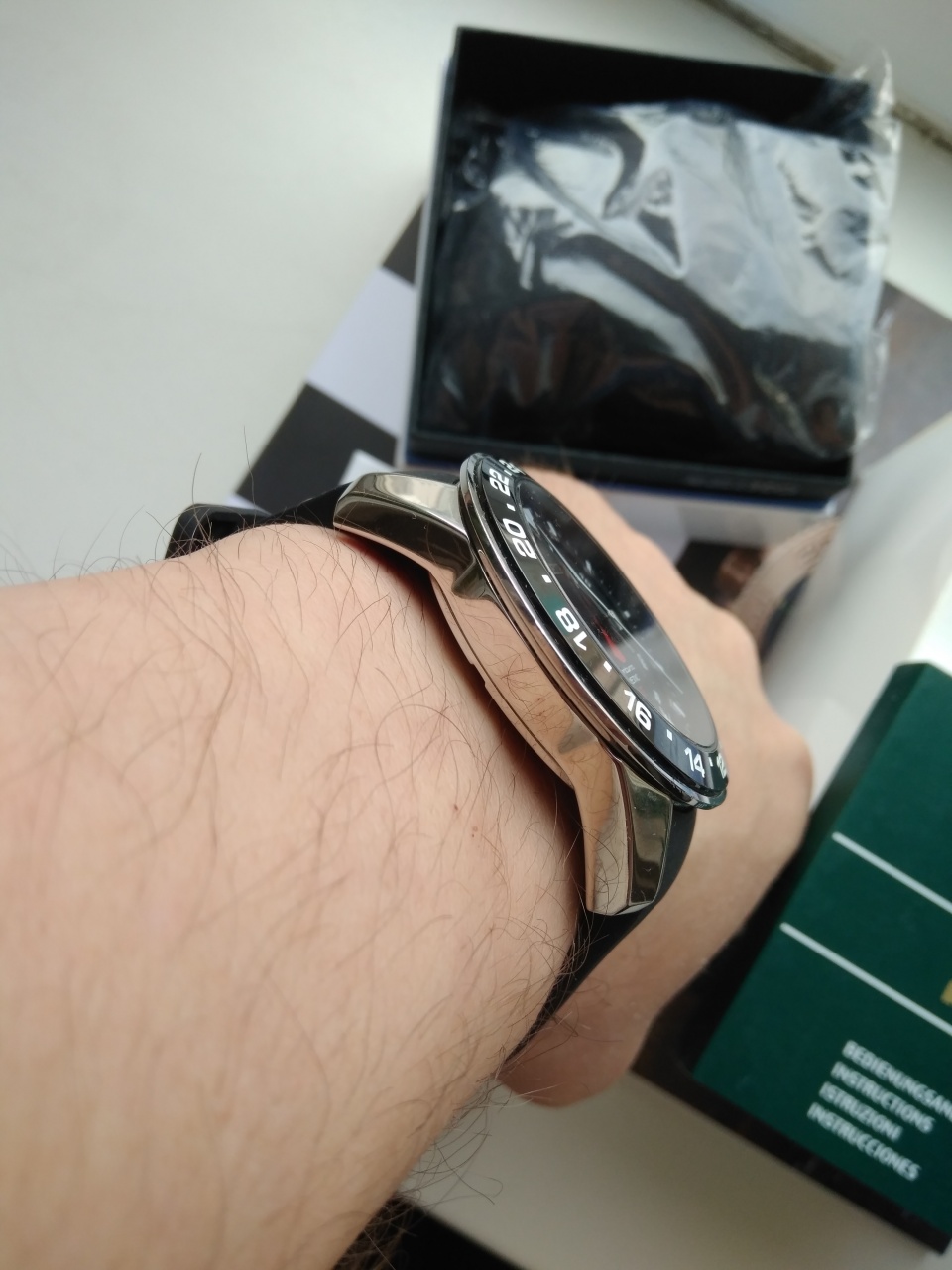 Использовались очень мало в щадящем режиме. Прекрасная точность и отлично держат заряд. Родной ремень поношен. Но часы спортивные, поэтому установлен сторонний каучук с идеальным примыканием к корпусу. Имхо это оптимально для подобных часов.
