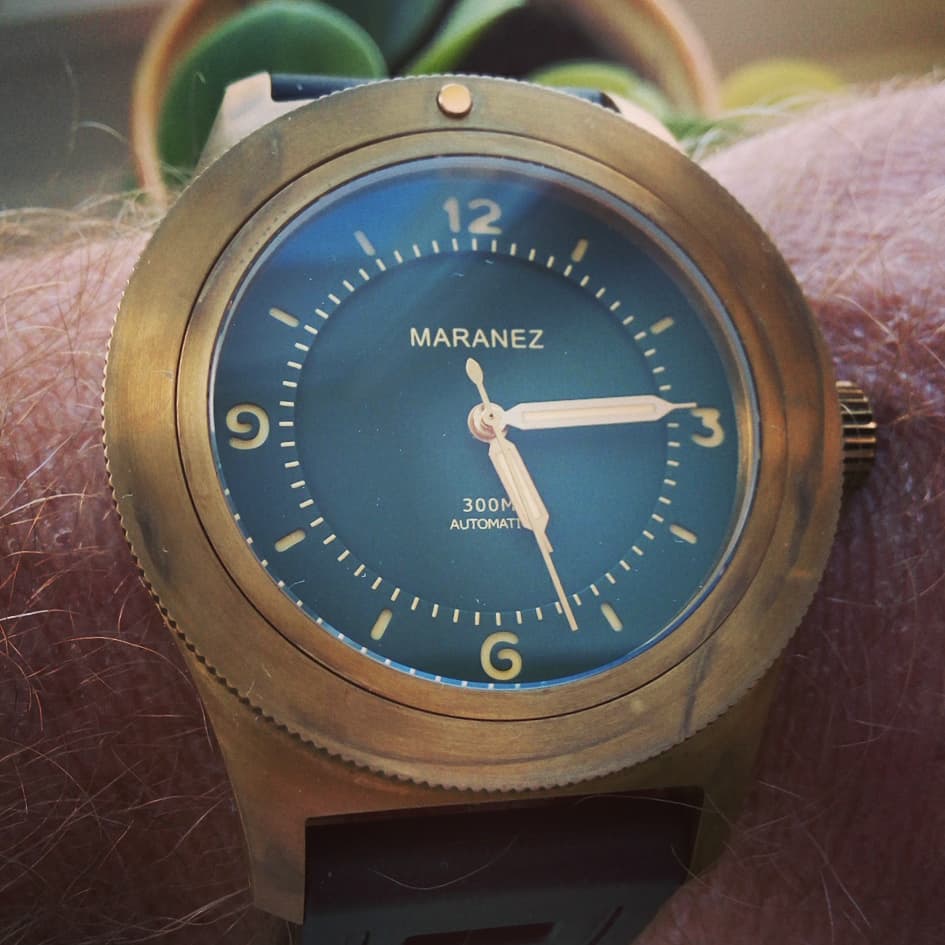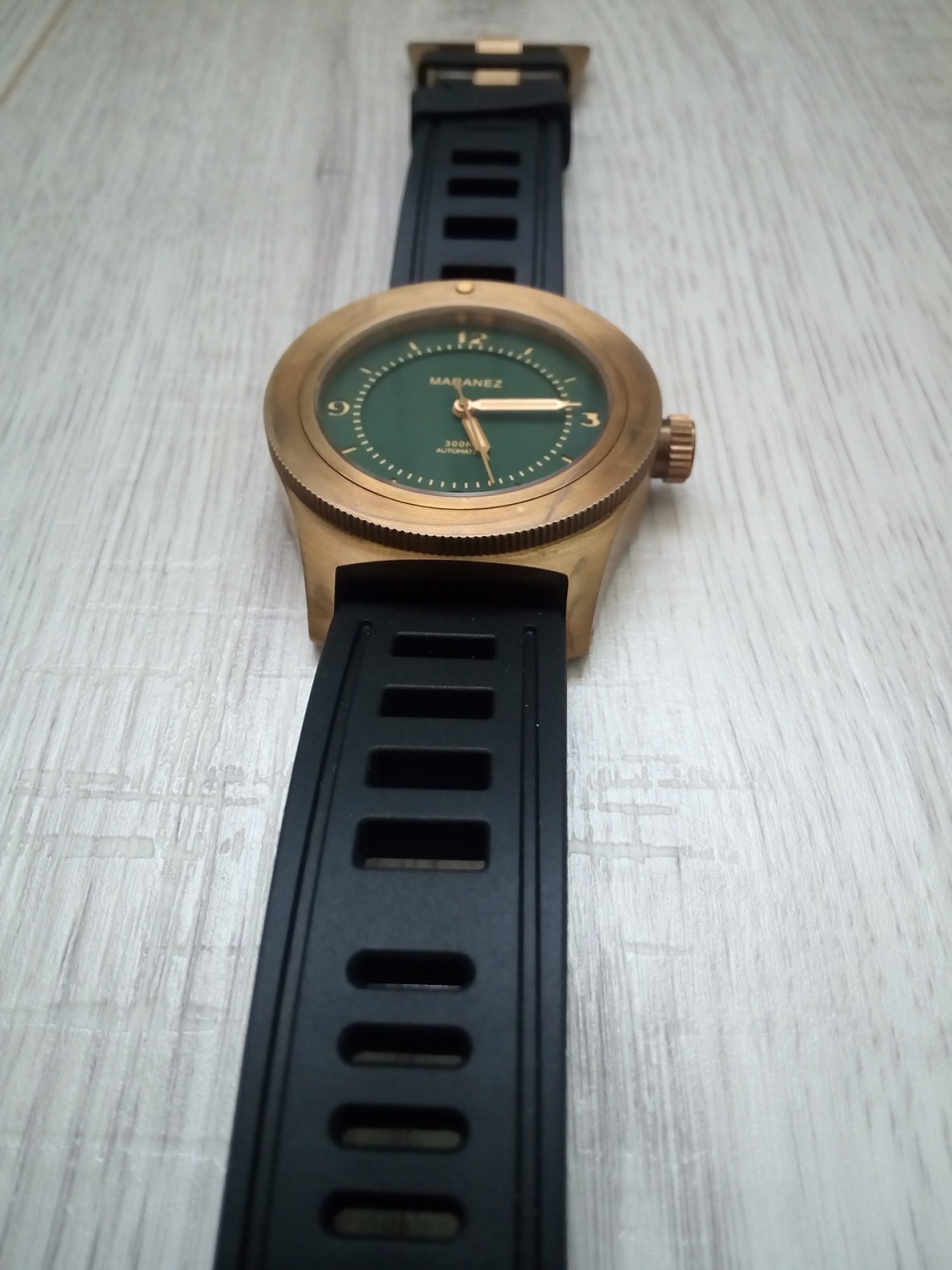 В продаже латунный дайвер в стиле "боевых плавцов" Maranez Talay с зеленым лицом. Часы можно сказать что новые, июль 2018г. Задумчиво примерялись на руку раз пять