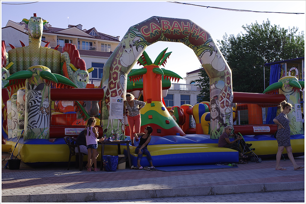 Зато детские развлечения в достаточном количестве. Гигантские батуты и бродильные городки - что им ещё надо-то?