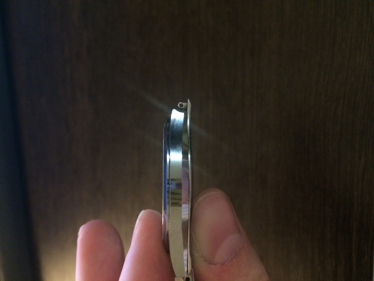 Нижняя стальная крышка была немного загнута вниз, на той стороне где скол ушек. Я поправил. Такое чувство что их зацепили и дернули сильно, ну или возможно падение. На техническое состояние никак не повлияло, только эстетически.