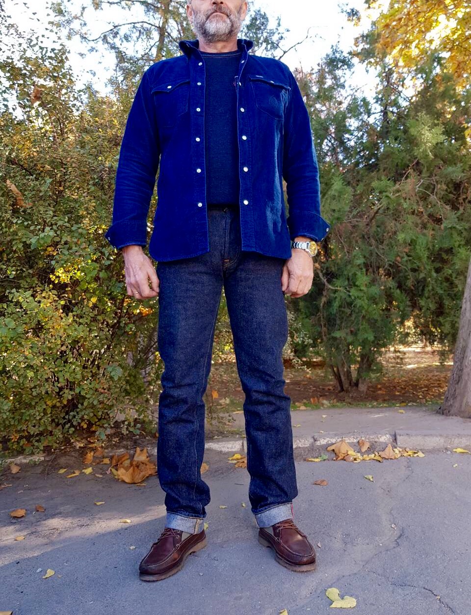 20 унцовый "нечурал сикрет" изначально тактильно мягкий и приятный , как и все Ониевские денимы . Окрас в миру больше отдаёт в голубой цвет .