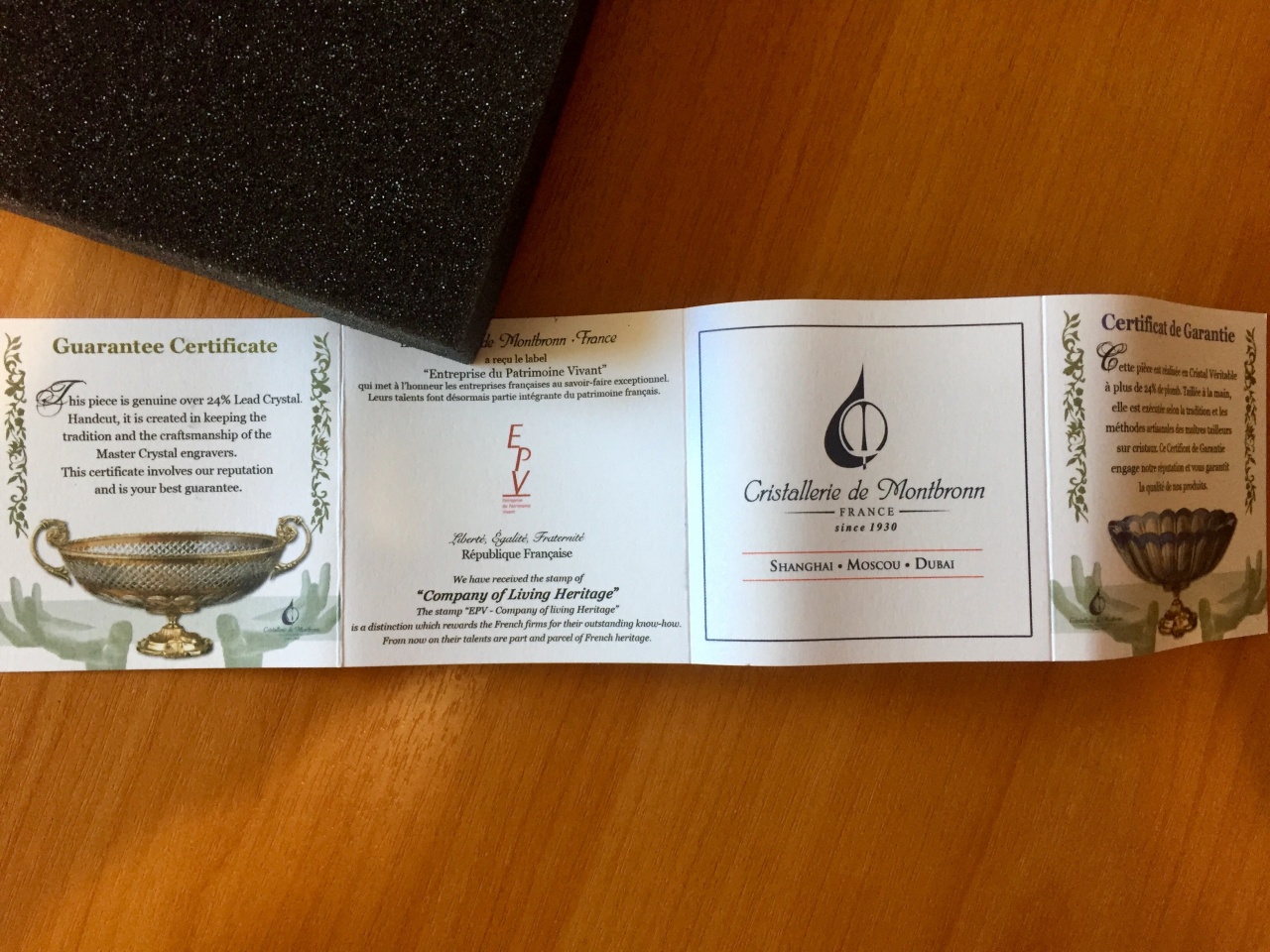 Продается новая икорница Cristallerie de Montbronn. Все пленки, коробка и сертификат подлинности присутствуют. Данное произведение искусства послужит отличным подарком для человека, у которого все есть. Изделия такого уровня являются штучными в России и привозятся только под заказ. Последняя цена аналогичной икорницы была в 4 раза выше.