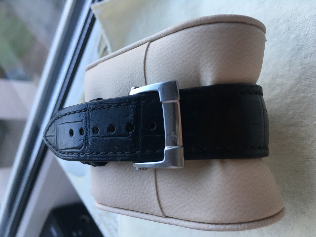 Продам культовый хронометр Ulysse Nardin Maxi Marine 41mm, который дополняет коллекцию морских хронометров, существующую с 1846 года. Официально сертифицированный механизм (C.O.S.C) имеет запас хода 42 часа. Элегантный 41-миллиметровый корпус из высококачественной стали, имеет индивидуальный номер и снабжен фиксируемой на резьбе заводной головкой. Циферблат - черного цвета, на котором расположены: индикатор запаса хода, маленькая секундная стрелка на увеличенном дополнительном циферблате и крупное окошко даты в положении «6» часов. Ремешок из кожи крокодила черного цвета, раскладная застежка. Водонепроницаемость 200 метров.
