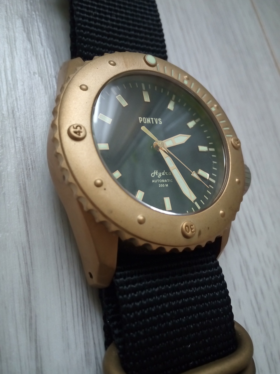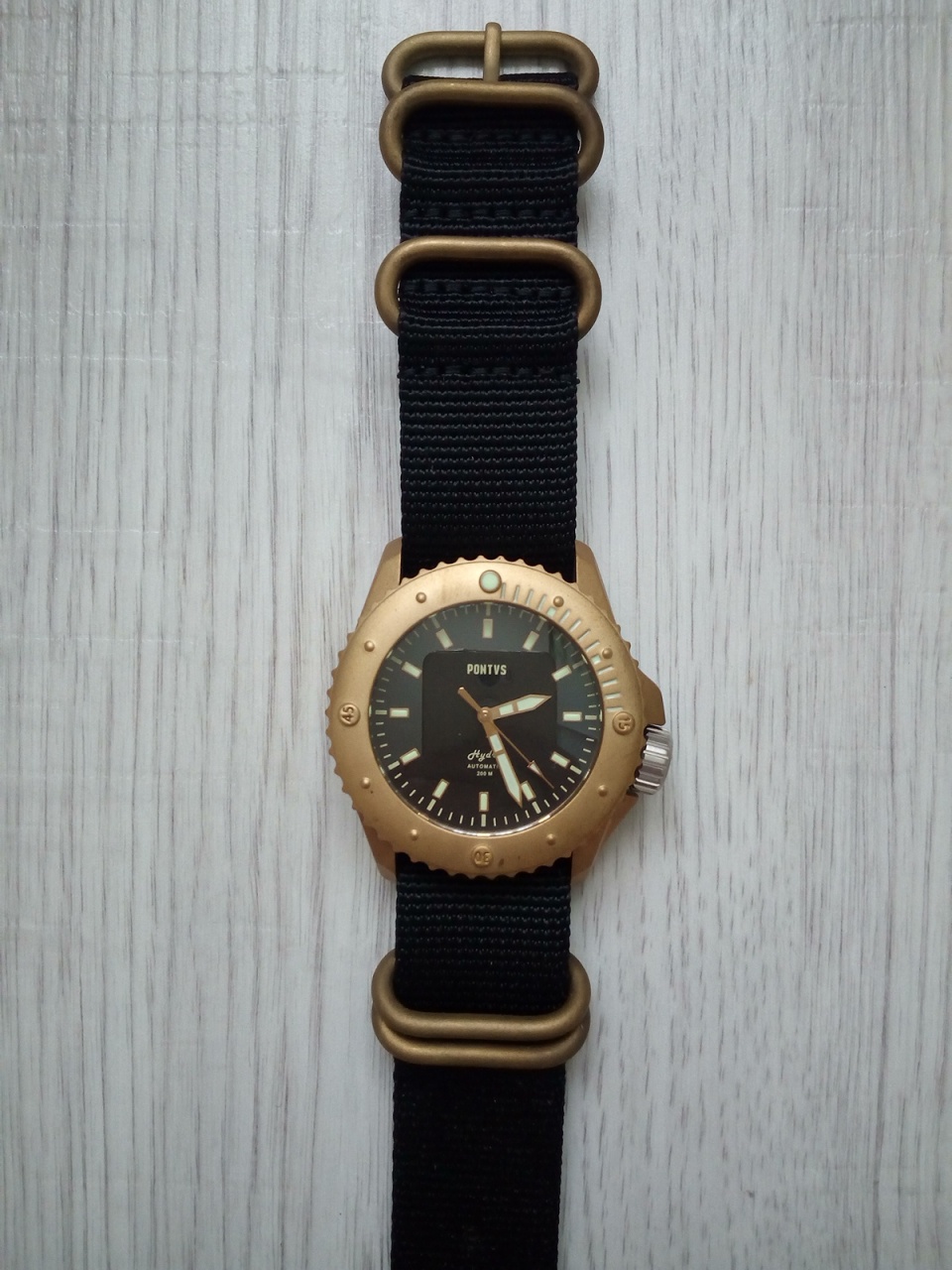 Шикарный дайвер в винтажном стиле в корпусе из матовой латуни PONTVS BLACK HYDRA - новые, полный комплект от производителя.