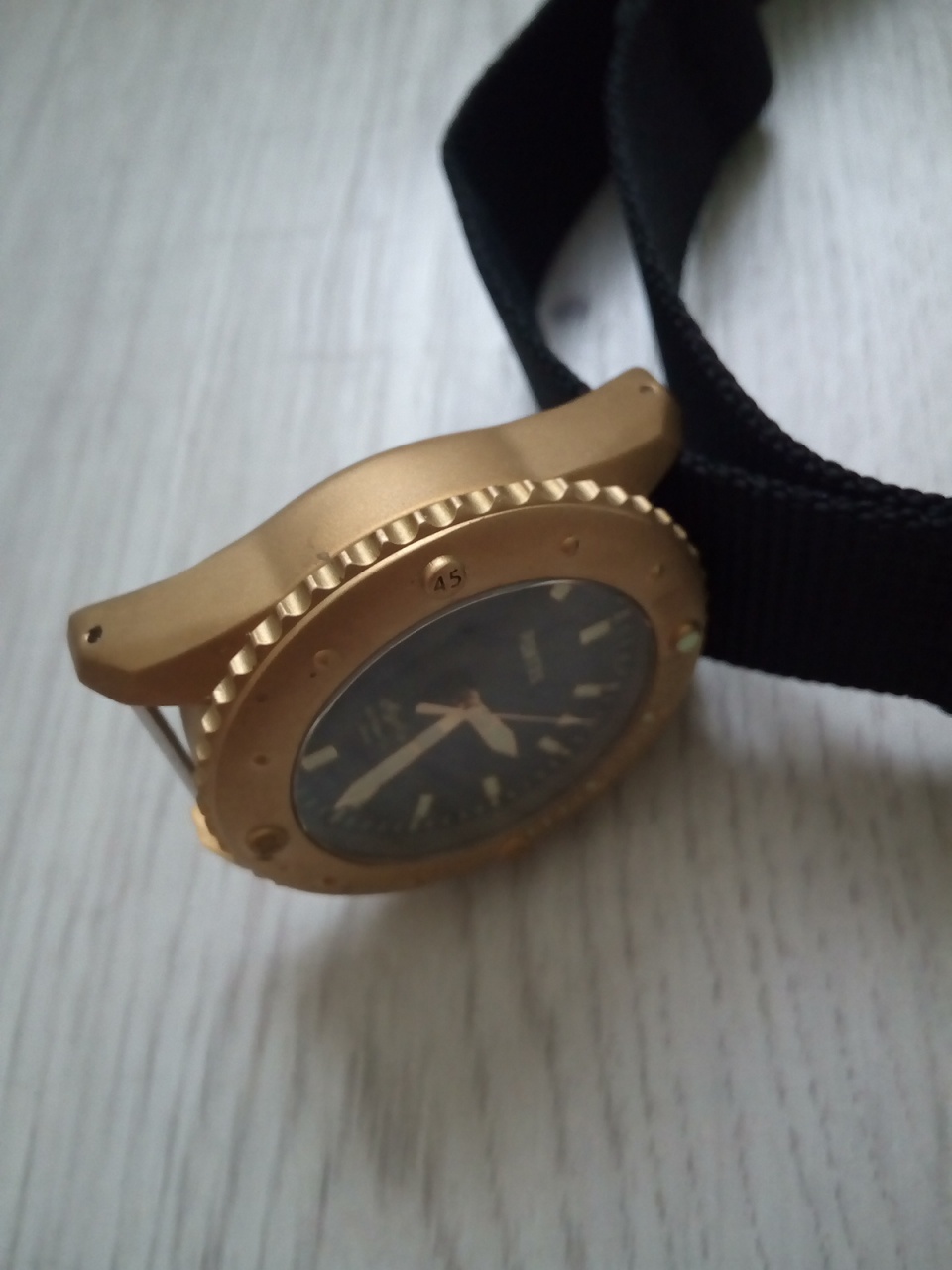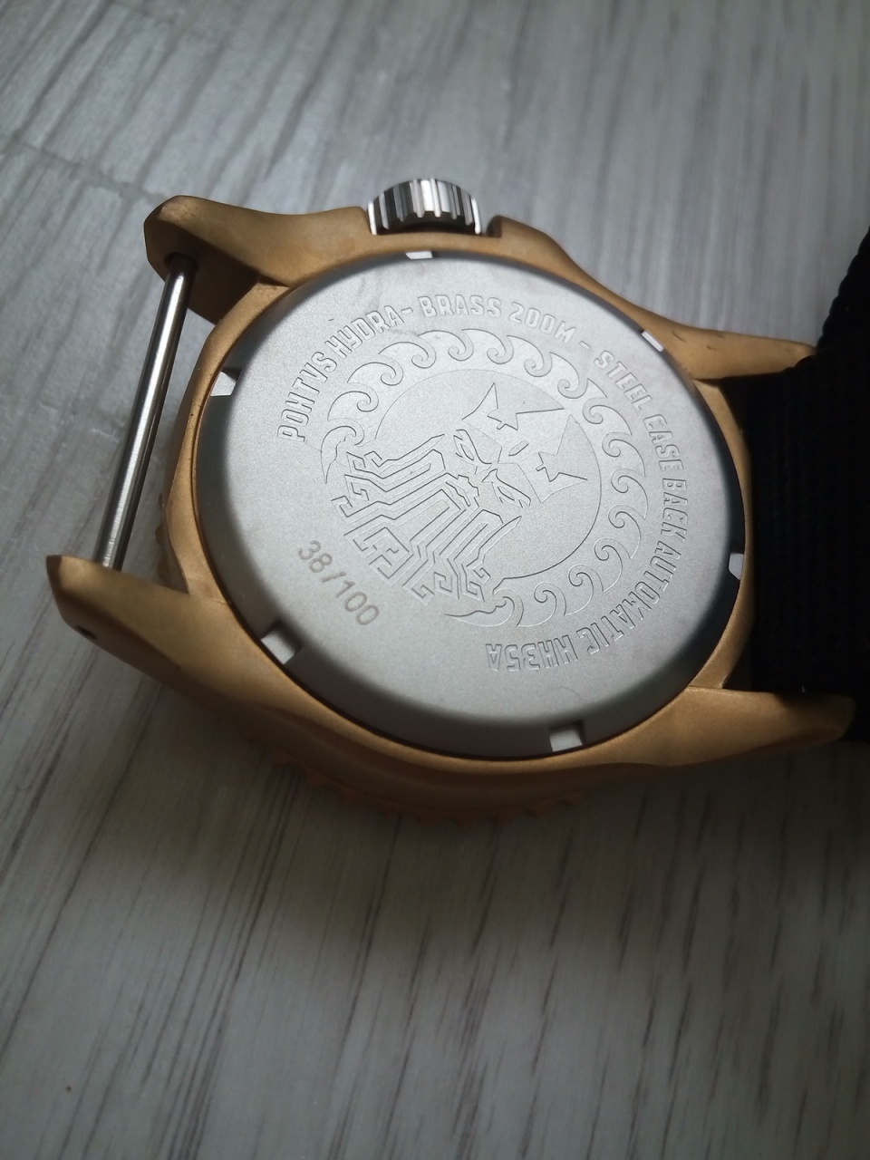 -Материал корпуса и безеля: Naval grade blasted Brass (70% Cu)
