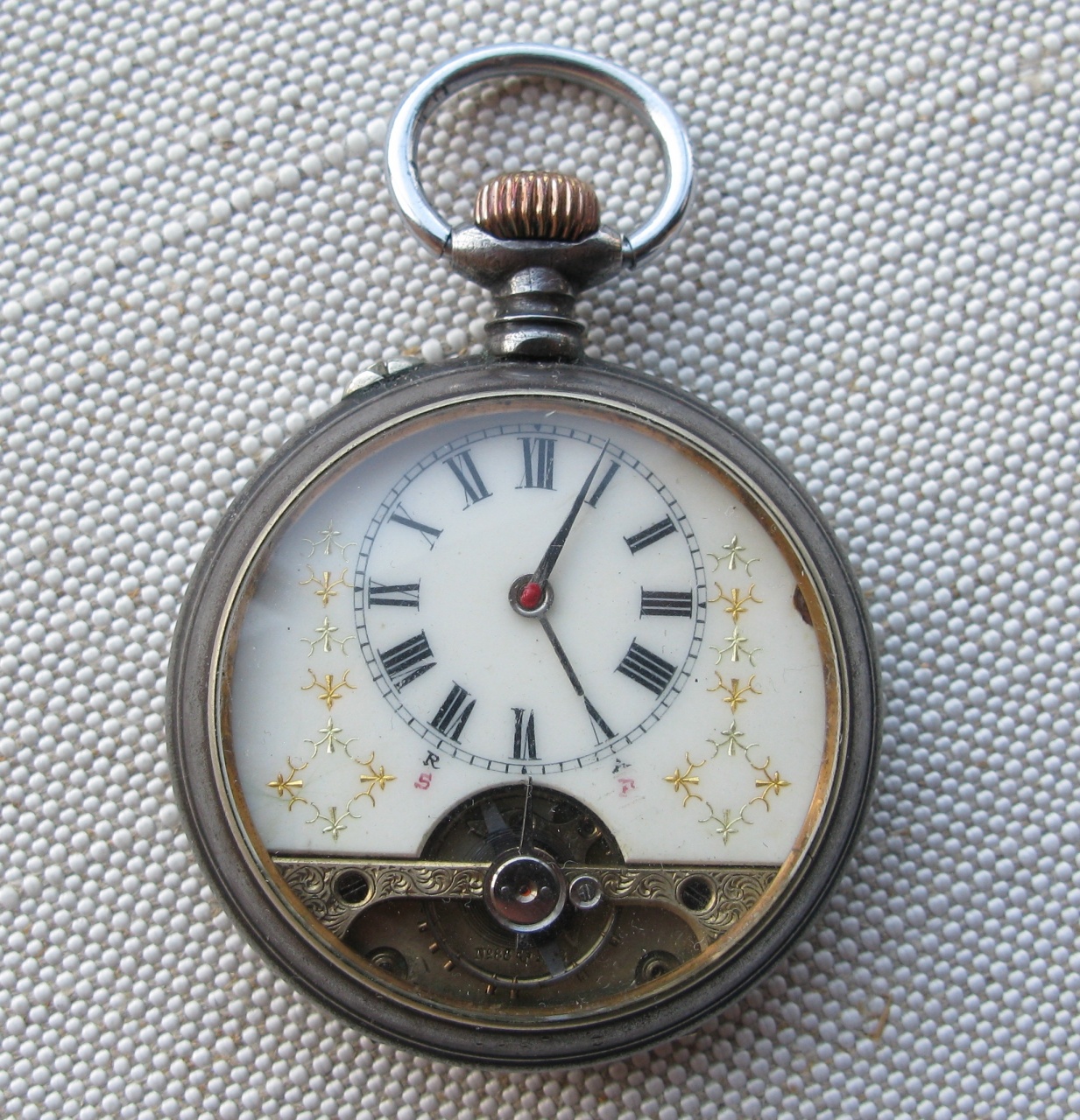 Карманные часы, 8 дневный завод, черная оружейная сталь, Швейцария, 49.3мм. Требуется реставрация крышки.
