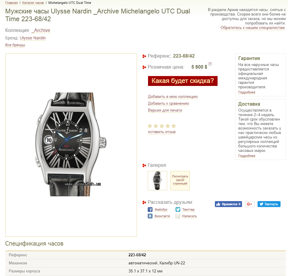 Ulysse Nardin Michelangelo UTC Dual Time Big Date 233-68 в самом превосходном состоянии!!!