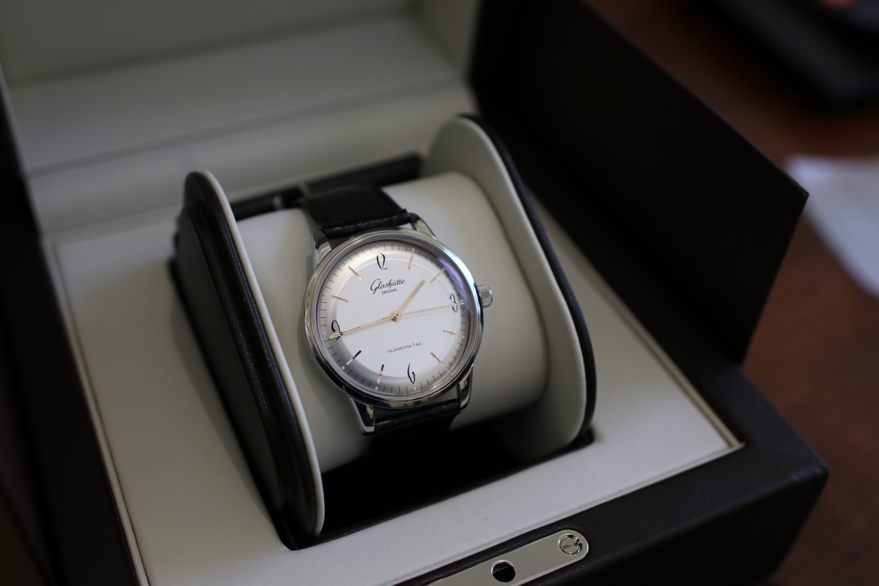 Glashutte Original Senator Sixties ( Крокодил , Золотые метки , Серебристый циферблат )