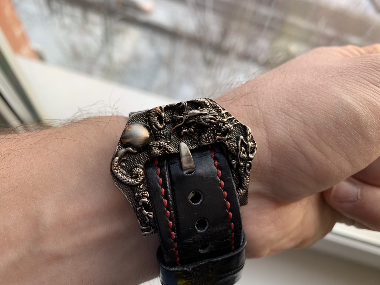 Сегодня бакля «дракон» и ремешок из крокодила.