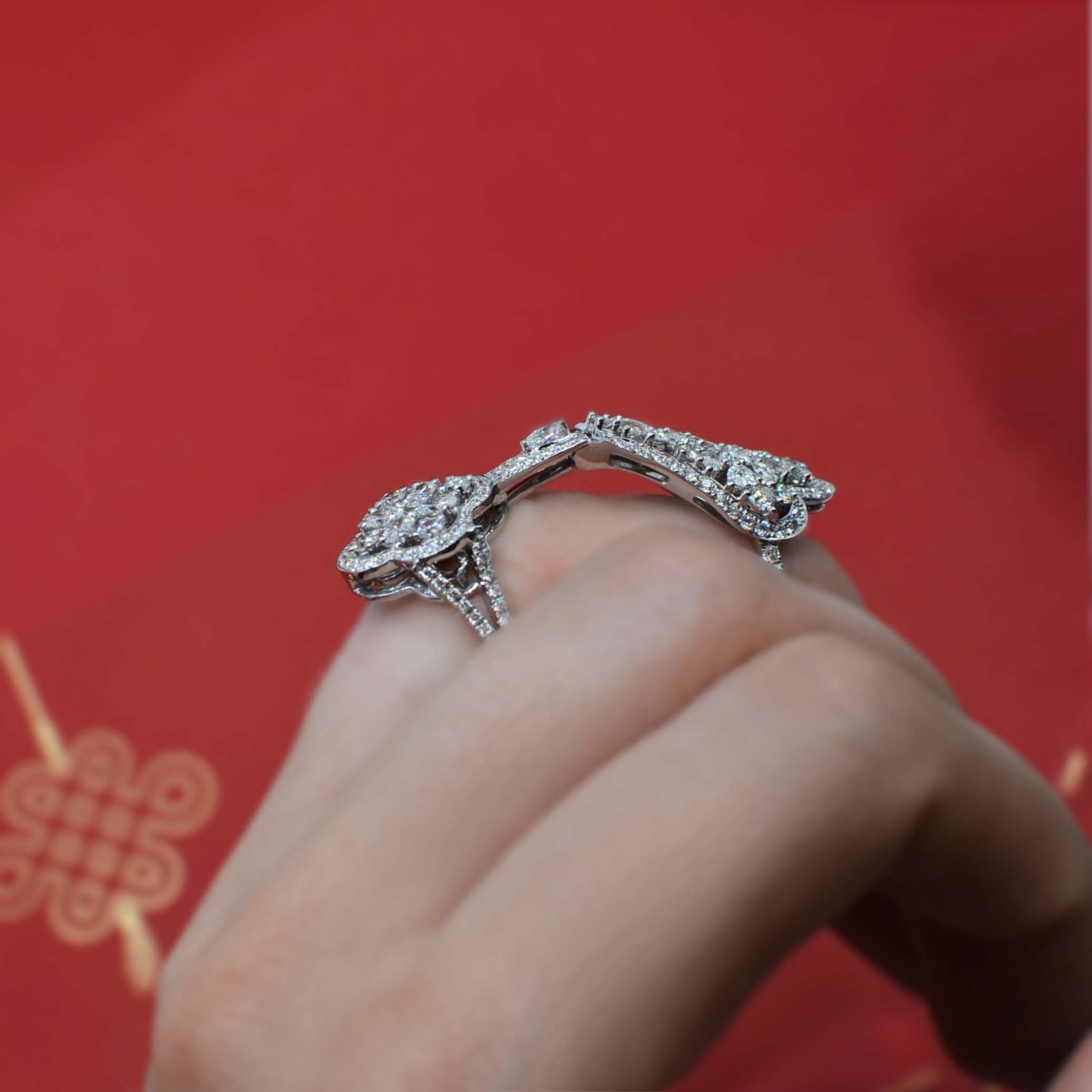 Очень изящно смотрится на пальце. Кольцо яркое, коктейльное, едва ли подойдёт для повседневной носки.