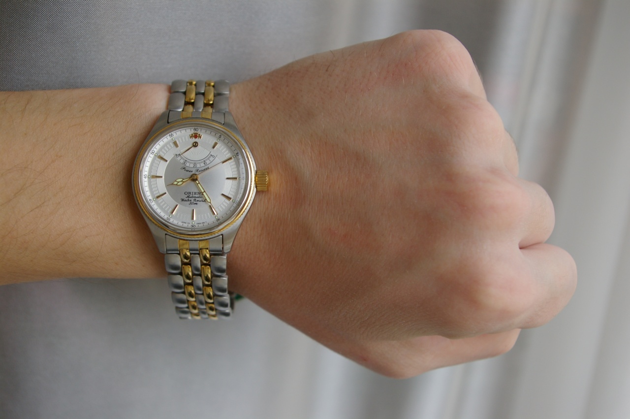 Я решил сделать себе подарок к 30-тилетию. Искал часы долго, мучительно, перебирая различные варианты. Меняя предпочтения, надоедая вопросами вам, форумчанам. И вот однажды в одной из тем я увидел зеленого Альпиниста от Сейко. Мне сразу понравилась эта модель: ее лаконичные формы, стрелочки винтажные. Но изучив вопрос и поняв, что их цена для меня не приподъемна, я подумал, что эти часы не для меня. И тут я вспомнил, что однажды скачал каталог коллекции Neo Classical Elegance от Ориент, отсканированный уважаемым AlexSan^ом. На картинках эти часы мне очень напомнили Альпиниста. Но я понимал, что это все-таки разные стили. Тем не менее, часы от Ориента мне приглянулись. Но меня ждало разочарование - оказалось, что эта коллекция снята с производства около 10-ти лет назад. Я поинтересовался на форуме - нет ли у кого ссылок на продажи этих часов, или может у кого-то есть желание их продать. Akopovich порекомендовал мне обратиться к Andy65, мол он совсем недавно продавал. Как выяснилось, продал. Но он обещал мне попытаться найти еще. Да я и сам не собирался сидеть на месте. Писал в Японию в Ориент, писал в Малайзию, представителю магазина, в котором эта модель значилась (но на деле оказалось, что они ее давно продали), Сейе, Хигучи. Все без толку. И вот однажды, когда я совсем было отчаялся и уже создал тему по поиску новых часов, вдруг выскочило личное сообщение от drill. Он писал, что в одном часовом магазине нашел искомые мною часы. У меня клавиатура выпала из рук. И пошло поехало, бесконечные переписки, беспокойство, ожидание. И вот они у меня. Я хотел, правда, в стали без позолоты, но в данном случае выбирать не приходится. И эти часы мне нравятся безумно. Итак, они примерно 37 мм в диаметре вместе с заводной головкой. Циферблат то ли перламутровый, то ли "под металл". Мелких деталей множество, но время считывается легко и быстро. Нет ни дня недели, ни даты, только индикатор запаса хода и две стрелки. Маятник автоподзавода - с покрытием. Часы довольно толстые, но изящные. На руку легли без проблем, размер классический. Браслет литой из стали. Съемные звенья на маленьких болтиках. Попытался установить точность хода. В первый день, как завел, убежали, причем довольно прилично, как мне показалось, на 1 минуту. Но завел я их не полностью, только ровно на сутки. Сегодня на все 40 часов завел. Посмотрим, что будет. Хотя, чтобы ни было - мне они все равно нравятся. Простите, что написал очень много. Просто хотелось поделиться чувствами и поблагодарить хороших людей.