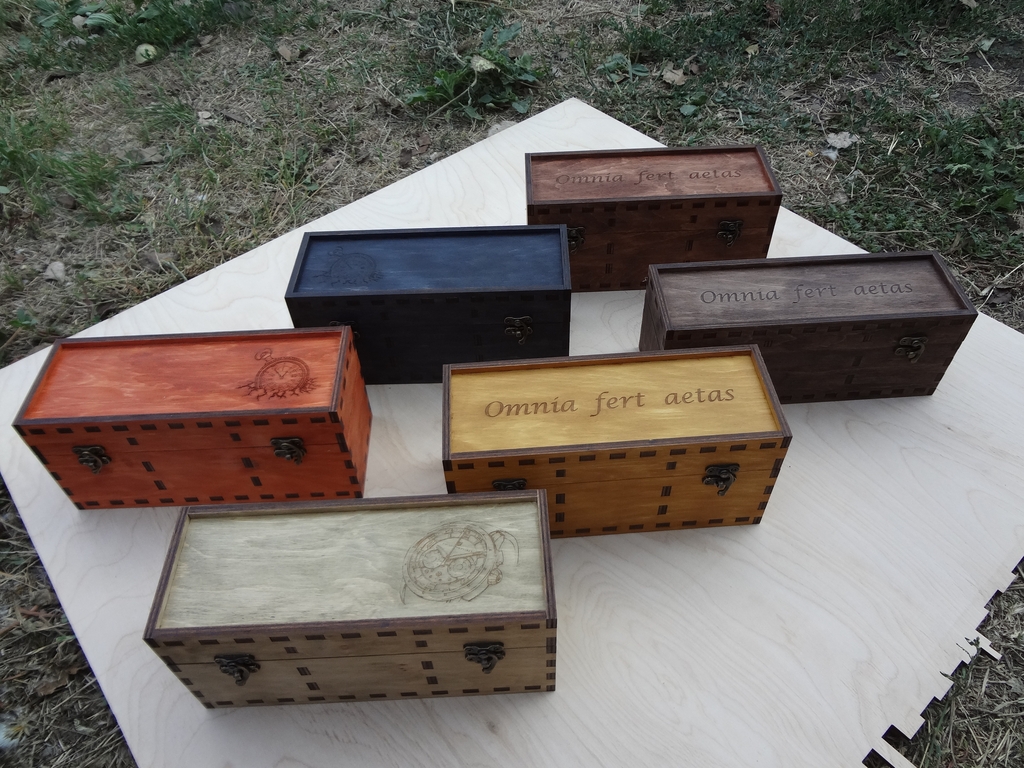В конечном результате после нескольких проб и ошибок у меня получились шкатулки среднего ценового сегмента, разных цветов, с не особо блестящим защитным покрытием. Если у кого-то есть замечания и доработки по конструктиву - с удовольствием выслушаю