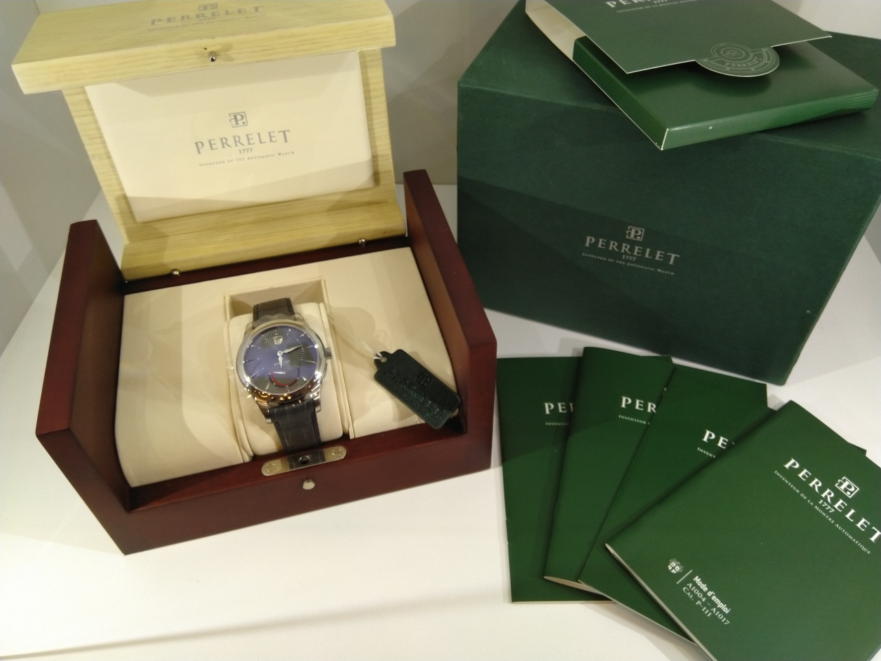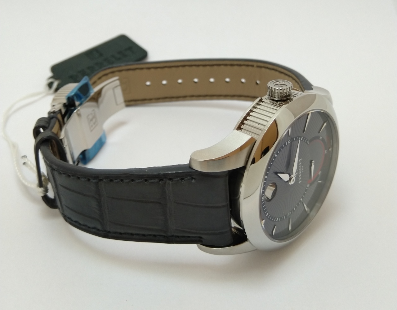 Механизм: Perrelet P-111 с механическим автоподзаводом, функцией даты и индикацией запаса хода.
