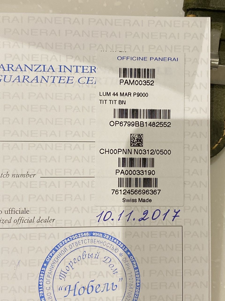 МЕХАНИЗМ: Автоматический механизм, калибр Panerai P.9000, производство Panerai, 13¾ линии, толщина 7,9 мм, 28 камней, баланс из сплава Glucydur®, 28 800 полуколебаний/час. Противоударное устройство Incabloc®. Запас хода 3 дня, два заводных барабана. 197 деталей.