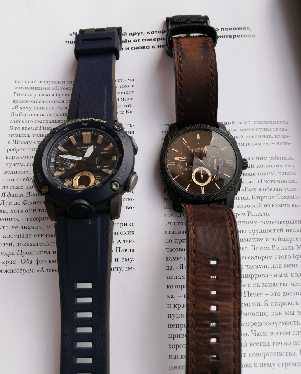 Дорогие сопалатники, все мы давно и хорошо знаем, что младшие братья часового дела часто и с удовольствием копирую, заимствуют или просто нагло воруют идеи дизайна братьев старших. Но вот наоборот как часто встречается такое? К примеру есть у меня два экземпляра, несомненно совершенно разные, но как же они похожи и в данном случае casio 2019 года модель явно позаимствовал идею дизайна fossil гораздо более старшего (по возрасту - времени выпуска модели, она, кстати, кажется, года с 2016-17) Или все же, как говорят, 7 нот подряд - не плагиат? Прошу здесь вас выкладывать, делиться мнениями и мыслями о таком "паразитизме"