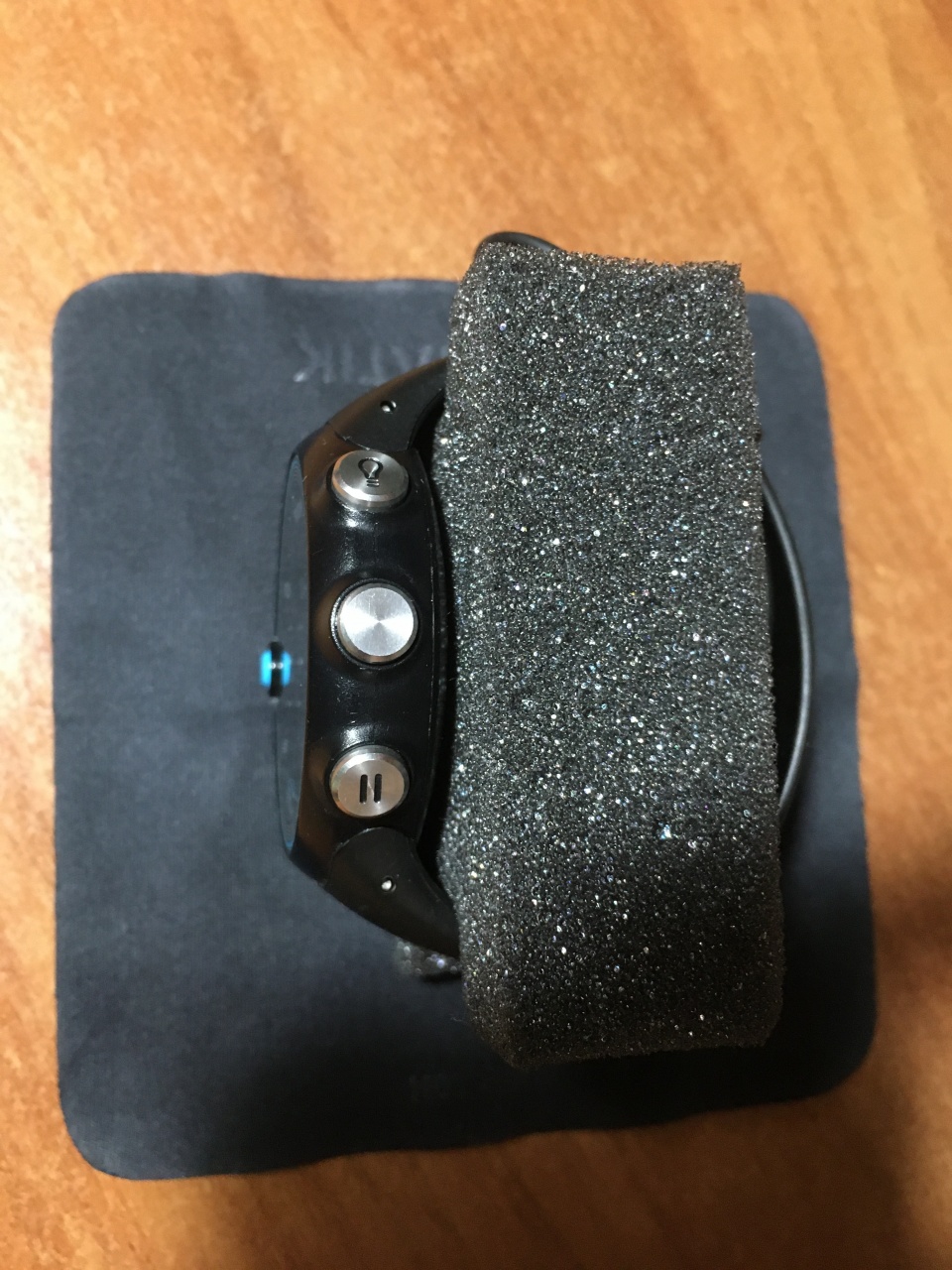 1. На кнопке начала тренировки (голубая кнопка слева по центру) стерлась иконка пловца в процессе эксплуатации;
