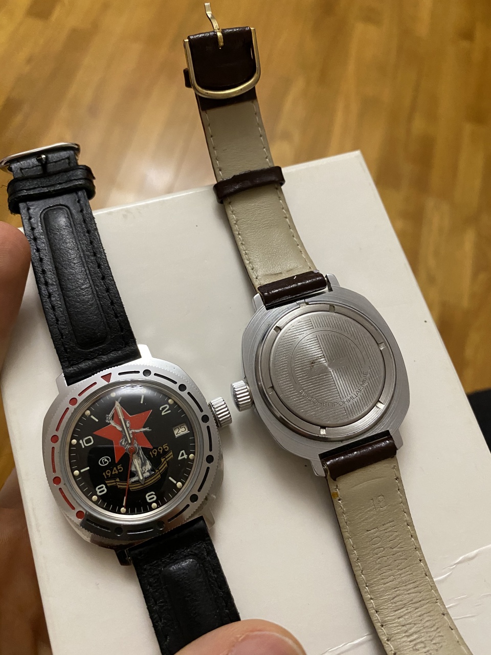 Добрый день. Деду и другому деду дарили вот такие часики. Подскажите, что за производитель, что за мех и к какой дате их дарили и кому, вообщем всё, что известно? Вижу надпись 1945-1995, но тем не менее. Безель, кстати, вращается в обе стороны.