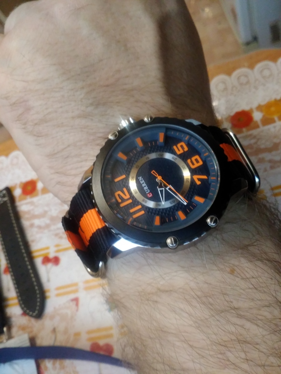 Пришли на прошлой недели с али Curren 8341. Уж больно дизайн понравился. Ни каких псевдо циферблатов, чуть больше стандартных (47мм). Крупные цыфирки и ничего лишнего. Что обнаружил на первой же минуте. При установке времени, при выдвинутой регулировочной головке, у минутгюной стрелки появляется люфт, который очень затрудняет точную ориентацию на нужную метку. С десятого раза удалось попасть, но настроение от по приобретения уже подпорчено. Ладно, думаю, не каждый день их устанавливать... Заменил родной ремешок на нейлоновый и часы заиграли!!! Проходит время и что я вижу. В некоторых моментах, при определённом расположении часовой и минутной стрелки, при прохождении рядом секундной, минутная начинает перемещаться в разные стороны примерно на - +0,5 мм. А ровно в полночь, когда все три стрелки оказались соорентированы на 12,обратил внимание, что Часовая стрелка указывает чуть левее и только примерно в 00.05 - 00.07 мин встала ровно на метку 12. Если первый косяк трудно зафиксировать на видео, то вторые два не составило особого труда. Ночью открыл спор, а уже утром пришло сообщение, что спор рассмотрен и принято решение о возврате средств. Что на следующий день и произошло. Вот как то так.