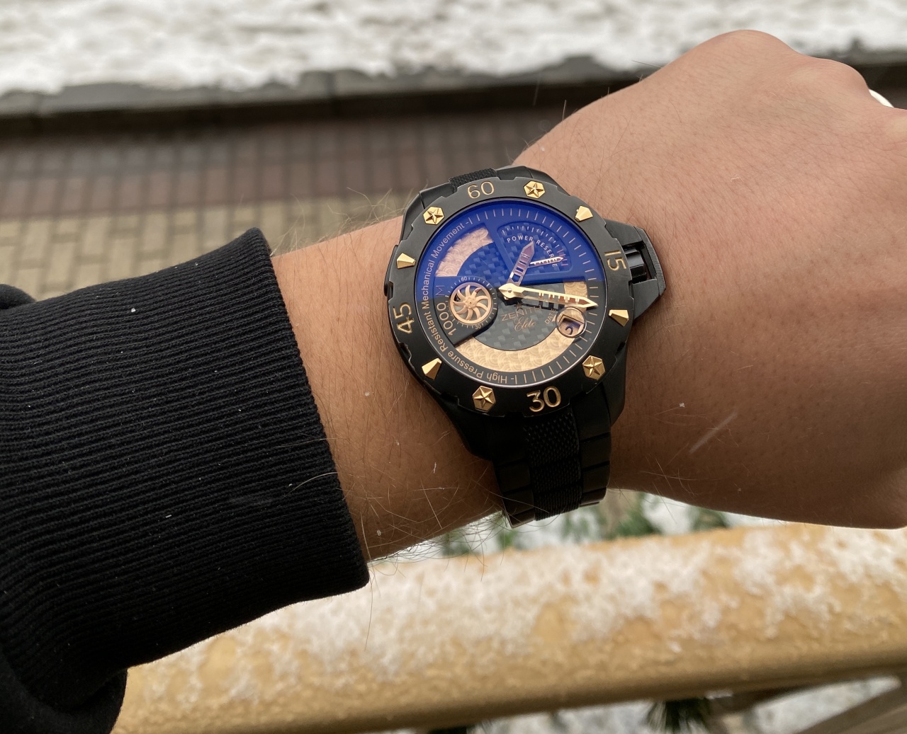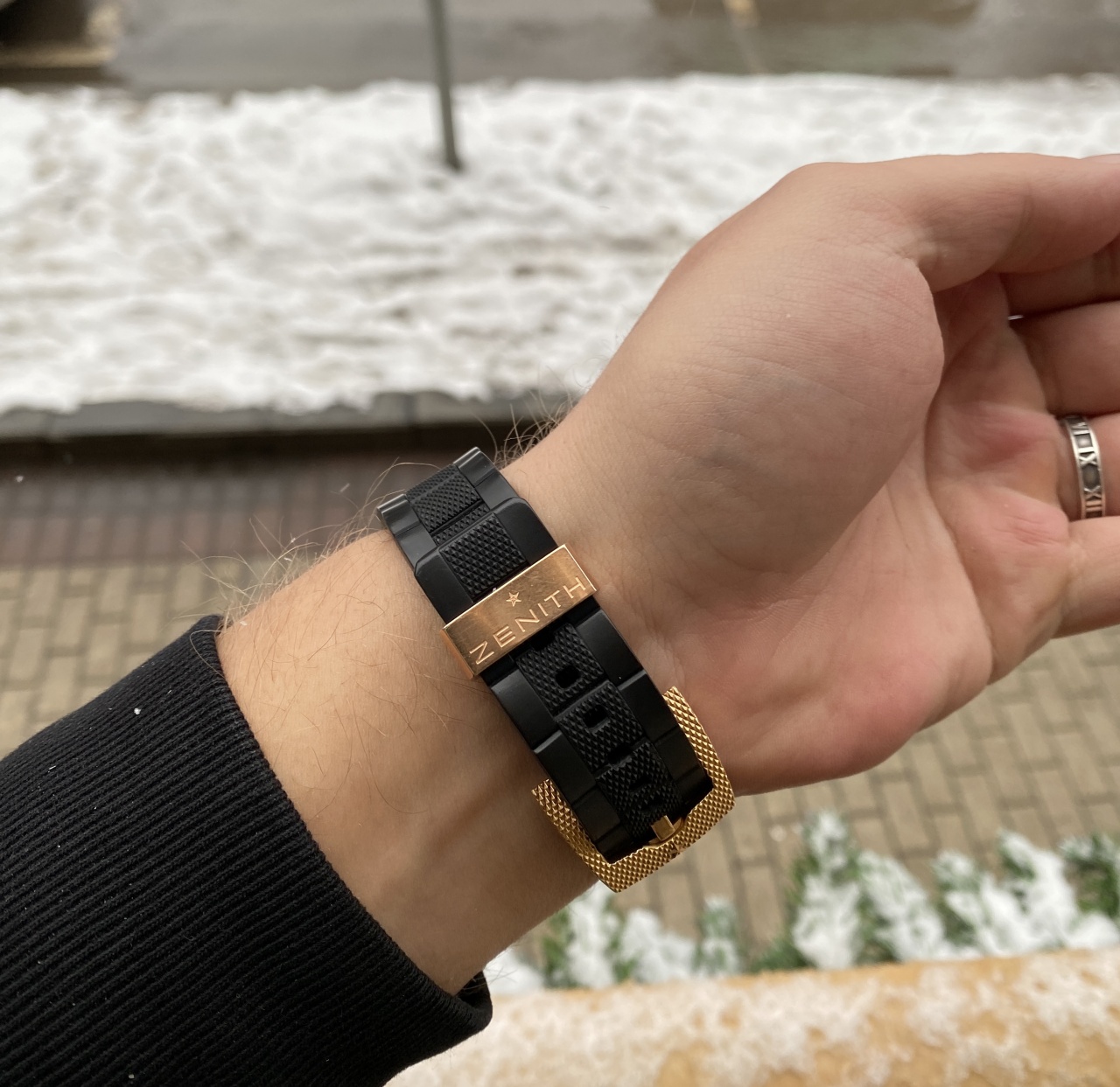 Шикарный Zenith с PVD и розовым золотом! Механизм после репассажа! Куплены в Mercury! Есть мелкие следы носки на PVD!
