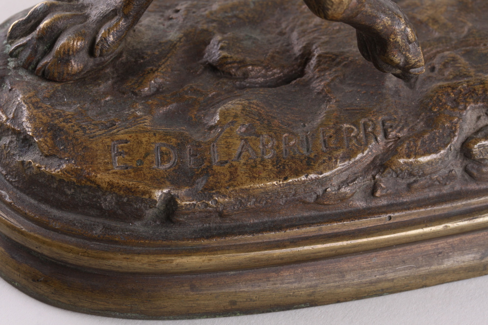 Edouard Delabriere (1829-1912) - известный французский скульптор-анималист Эдуард Делабриер. Эдуард изучал живопись под руководством известного мастера Жана-Батиста Делестра (Delestre). Сформировался как скульптор под влиянием Антуана Луи Бари. Многократно участвовал в Парижских Салонах изящных искусств, начиная с 1848 года, на которых он представил более 70 скульптур.
