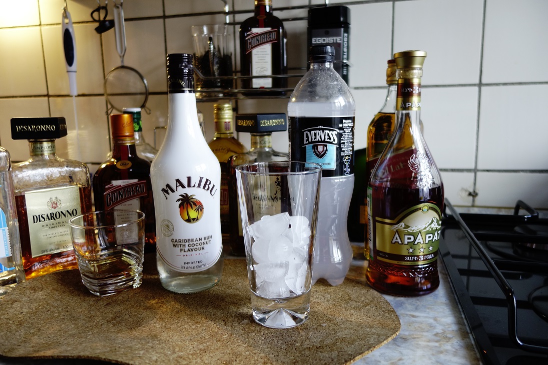 Можно приготовить целую гамму коктейлей по простой формуле: стакан со льдом, 1/3 рома малибу и 2/3 чего угодно - колы, ананасового сока, тоника, и др.