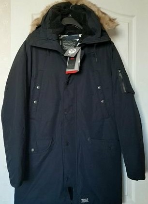 Продаю новую пуховую парку Levi's Hooded Down Davidson Black. Мужская удлинённая парка Levi's Hooded Down Parka выполнена из толстого слоя износостойкого материала на основе хлопка и полиамида. Внешний материал и утеплитель сохраняют тепло и защищают от ветра, дождя и снега. Модель застегивается на молнию с ветрозащитным клапаном на кнопках и имеет прямой крой, капюшон с меховой накладкой, четыре внешних кармана, карман на рукаве и шнуры - утяжки в капюшоне.Состав:Верх -74% хлопок, 26% полиамид,наполнитель 80/20 утиный пух и перо,подкладка из хлопковой ткани Plain Weave, которая контактирует с поверхностью кожи и выводит с нее пот, обеспечивая ощущение сухости и прохлады в любую погоду.Цвет Black.Made in China.Размер XL.(52-54) Замеры - плечи 51 см,подмышки 64 см,рукав 68 см,спина 92 см. Цена 13990 р.В подарок новые перчатки Adidas с возможностью управления сенсорными устройствами или шапка Levis (made in Italy).Торг,пересылка Дополнительные фото по запросу.Товар находится в г.Липецк. Оплата на карту сбербанка.Отправка за счет покупателя почтой России или ТК на выбор