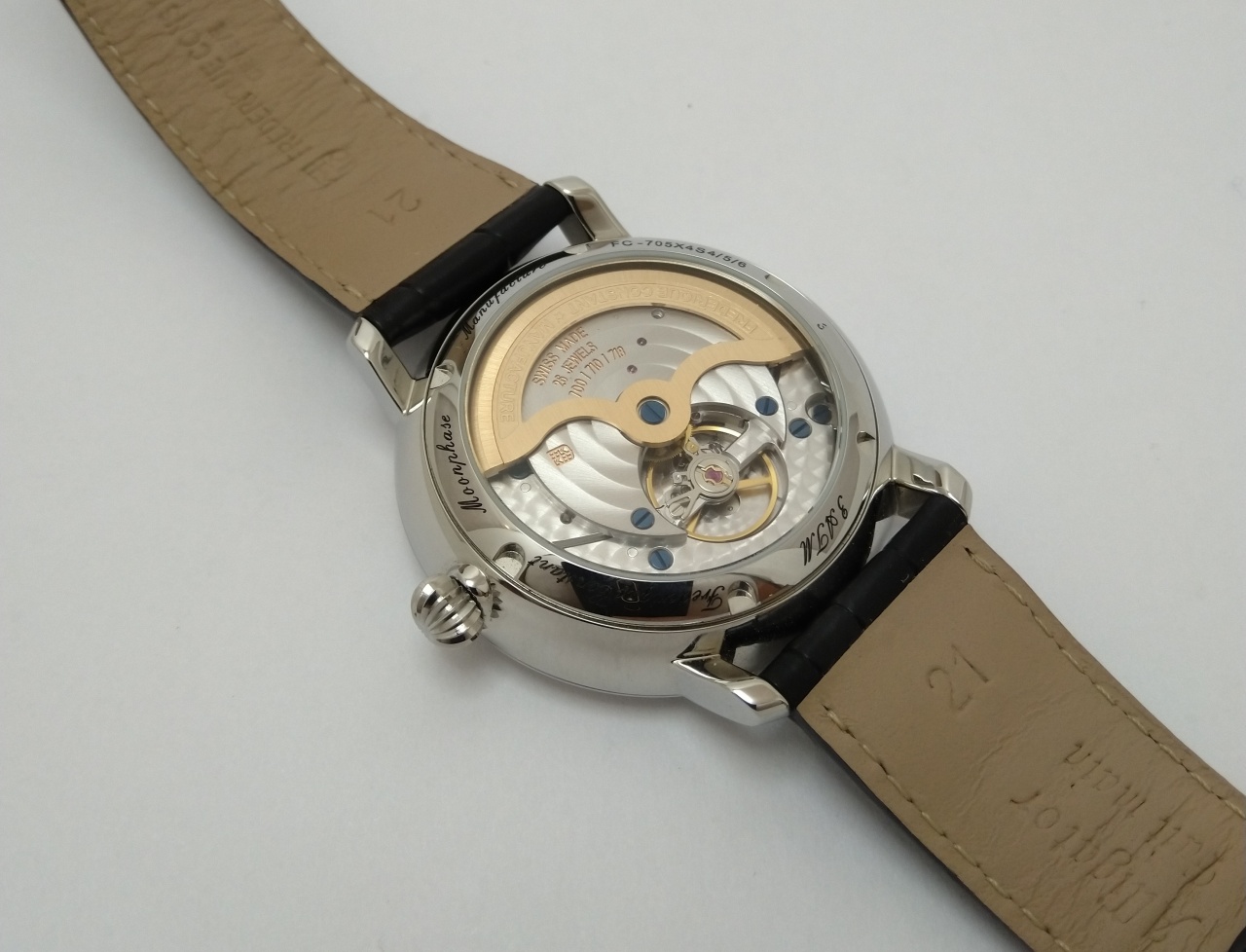 Механизм: автоматический FC-705, с индикациями фаз луны и датой. Запас хода до 42 часов.