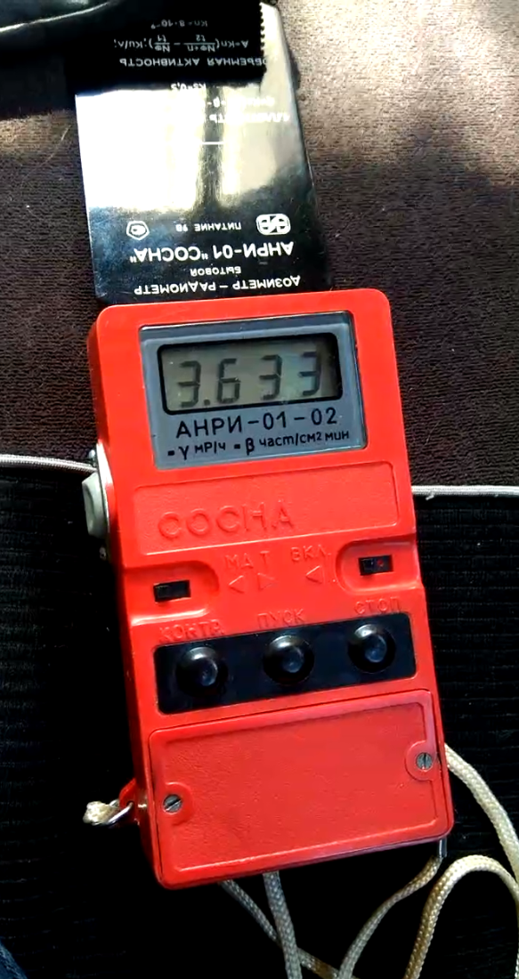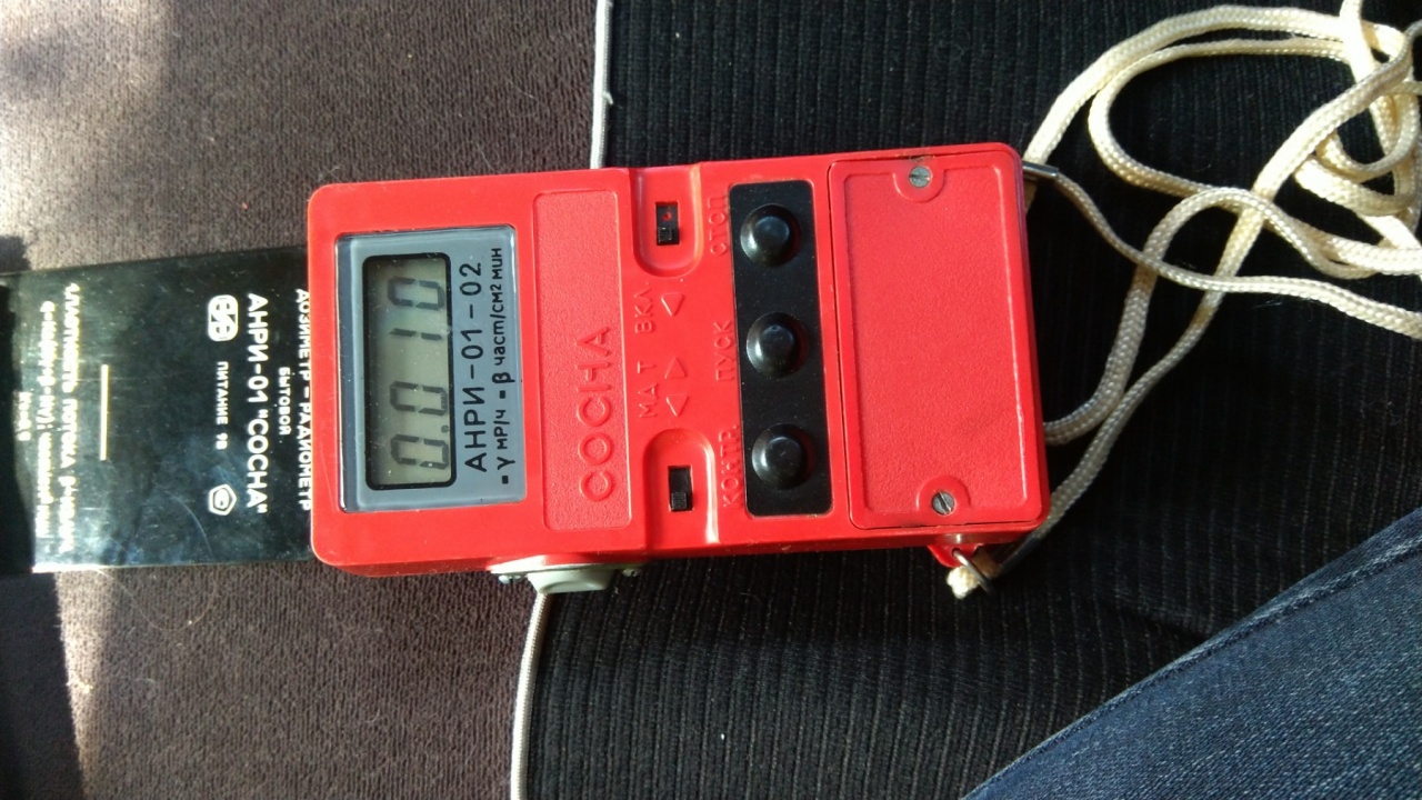 Фотография чистого фона в машине, часы и дозиметр и результат измерений.