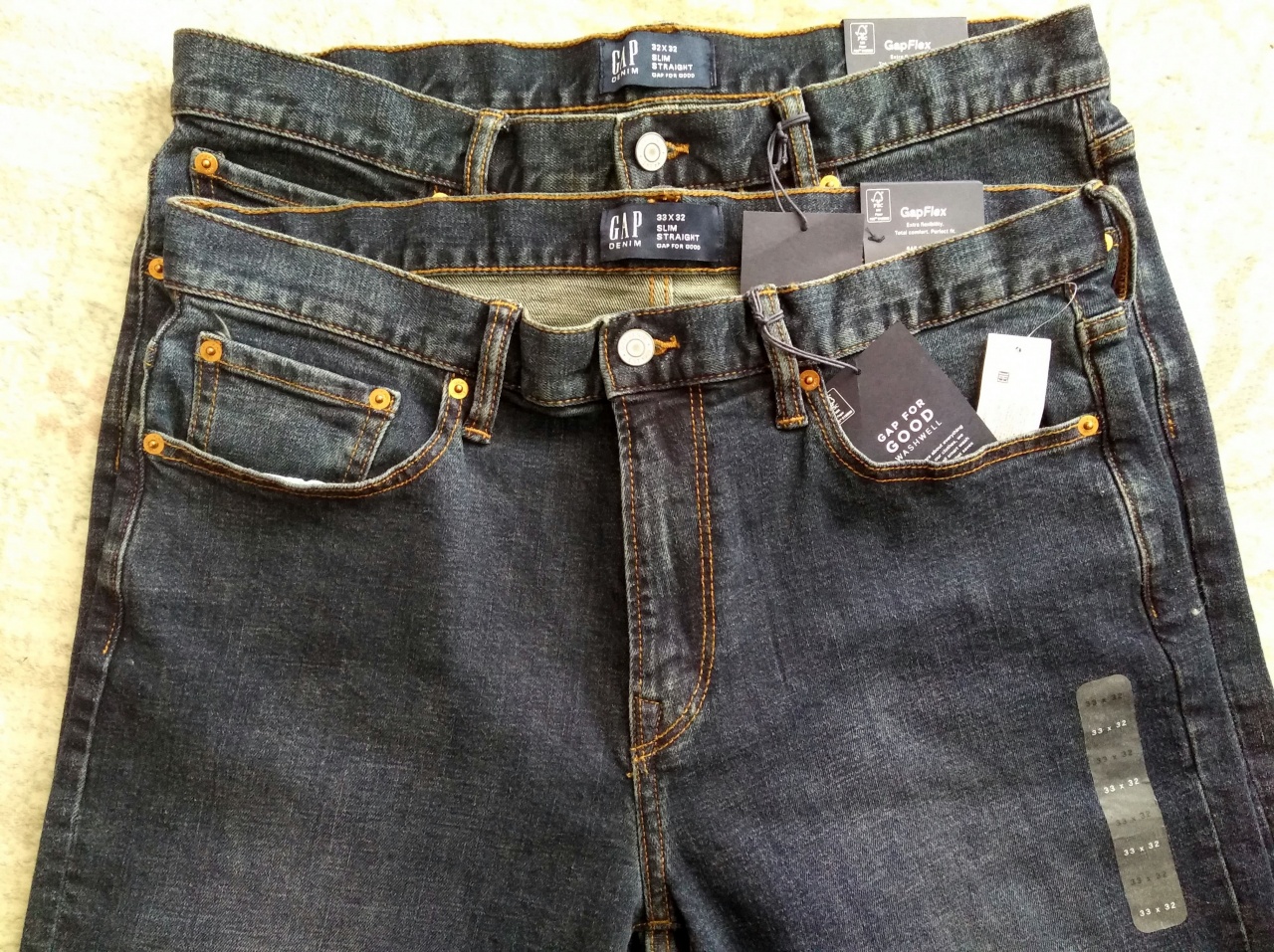 Подскажите пжл, в первый раз купил джинсы с 1% эластан, - 32 облегают точно по фигуре, 33 чуть-чуть свободнее, разница очень маленькая. В запасе длина есть, 2" (5-6см).