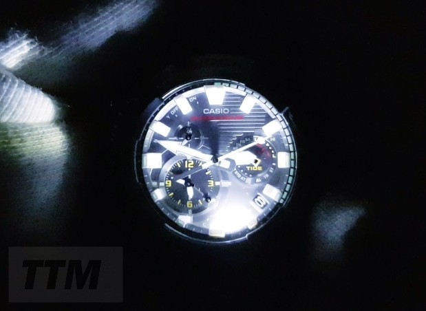 При нажатии на кнопку подсветки экран ярко освещается в ультрамодный цвет.