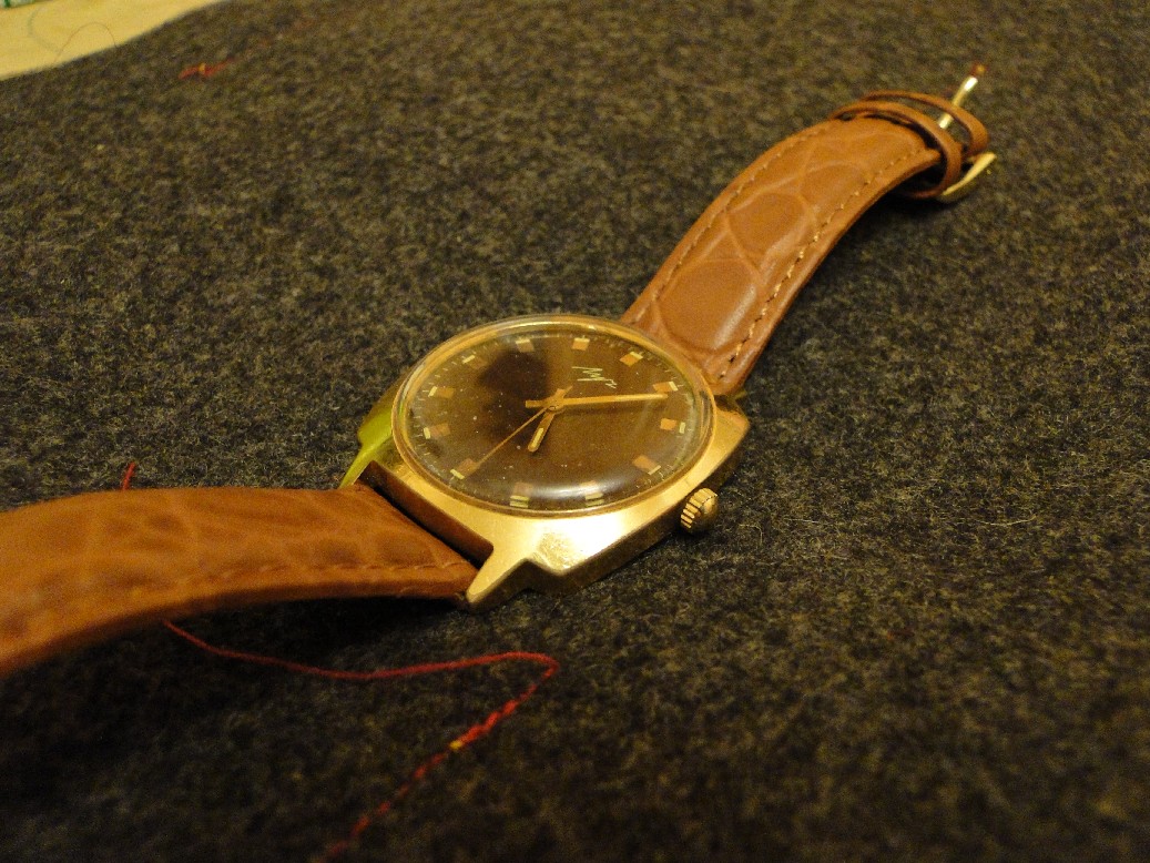 Вот такой Луч на днях забрал из ремонта. Дизайн мне не очень нравится, циферблат сильно поношен. Но зато какой там красивый механизм! К такому механизму надо бы прозрачную заднюю крышку ставить! Правда, точностью он пока не радует - первые сутки (днём носил) -7 минут, вторые (лежали дома) -3 минуты.