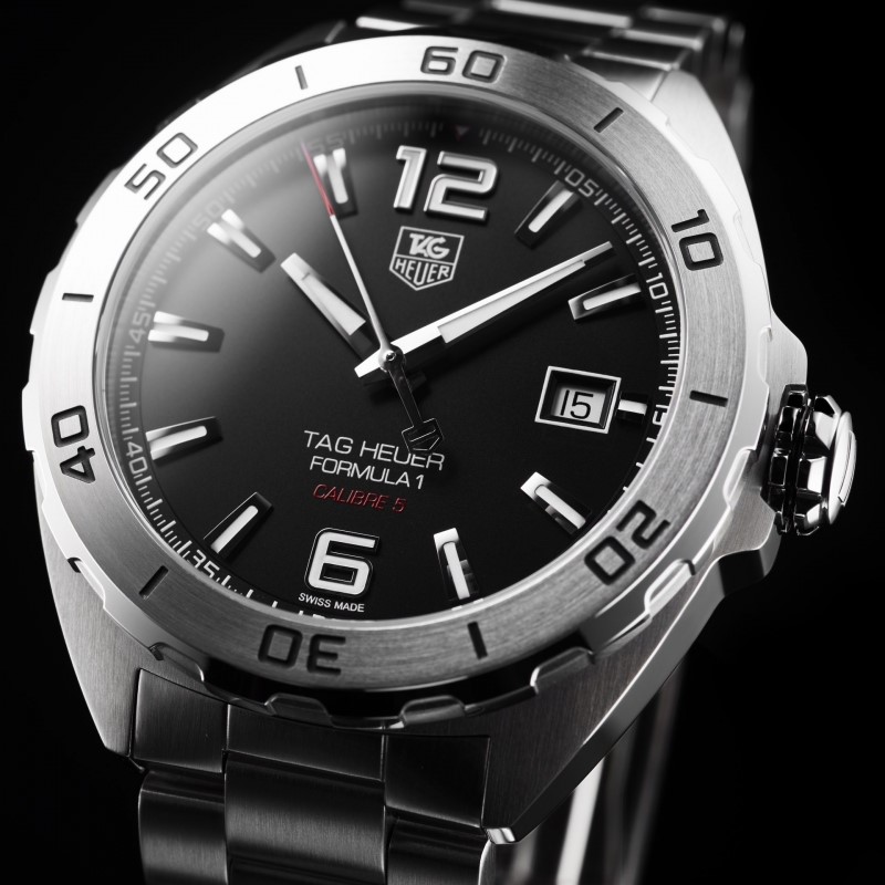 Модель имеет однонаправленный стальной безель 41 мм, размеченный минутными индексами, сапфировое стекло с внутренним антибликовым покрытием. Круглый корпус выполнен из нержавеющей стали 316L, поверхности с матовой шлифовкой - сатинированием и глянцевой полировкой. Циферблат черный. Аппликация накладных часовых индексов и цифр, стрелки с покрытием, ювелирной огранкой и глянцевой полировкой. Светящееся в темноте покрытие люм Superluminova стрелок и разметки циферблата. Счетчик текущих секунд с эффектом Azurage. Секундная стрелка с красным наконечником. Монохромный логотип TAG Heuer. Завинчивающаяся заводная коронка «Easy Grip» из полированной стали с рельефной эмблемой TAG Heuer в форме щита. Задняя крышка с гравировкой Formula 1 в виде гоночной “клетки” имеет резьбовое соединение с корпусом. Литой браслет из высококачественной нержавеющей сатинированной стали с 3 рядами звеньев, раскладывающаяся браслетная застежка с дополнительным фиксатором, предохраняющим от произвольного расстегивания и возможностью быстрого удлинения для надевания на гидрокостюм. Водозащита: 200 метров (20 бар/АТМ).
