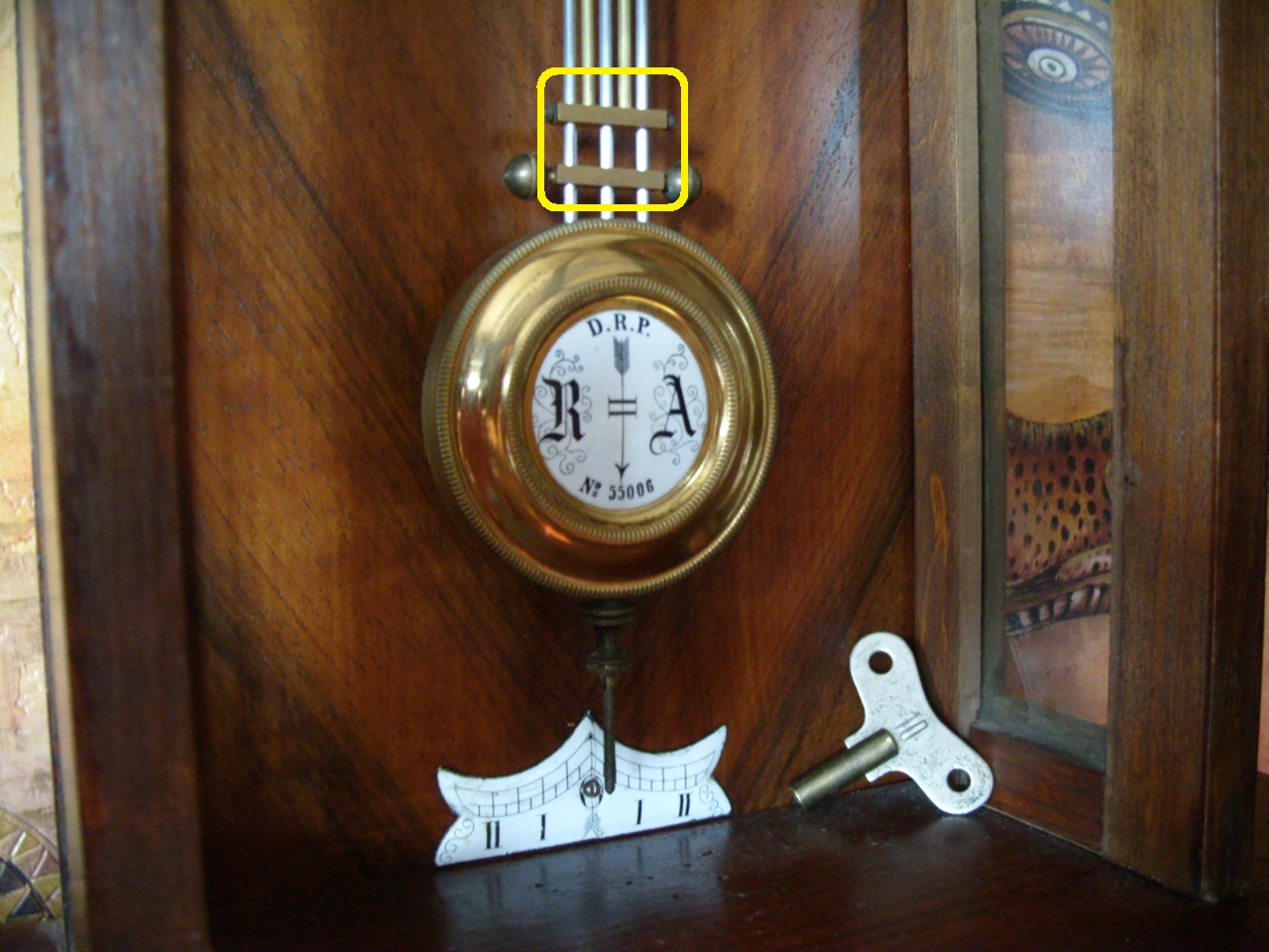 Фирма FMS (F.Mauthe). Патент DRP 55006 1890 года вступил в силу в январе 1891 года. По моим наблюдениям подписанный маятник использовался только первое время.