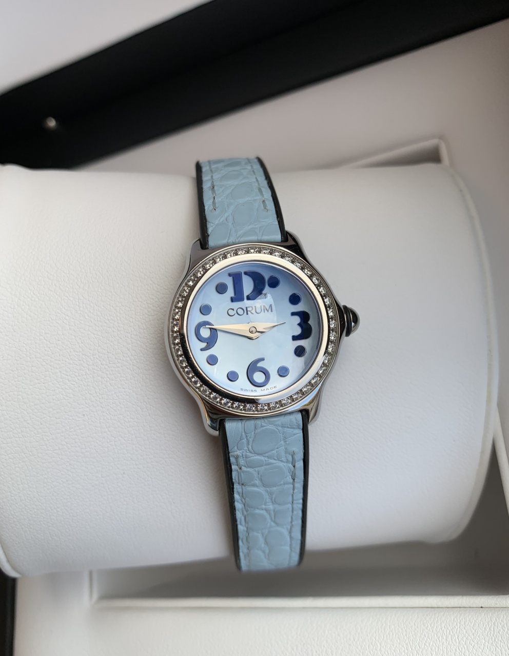 CORUM BUBBLE mini с 41 бриллиантом на безеле 0.48ct и перламутровым циферблатом.
