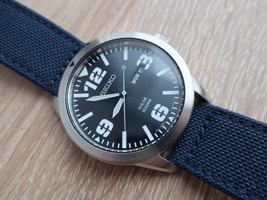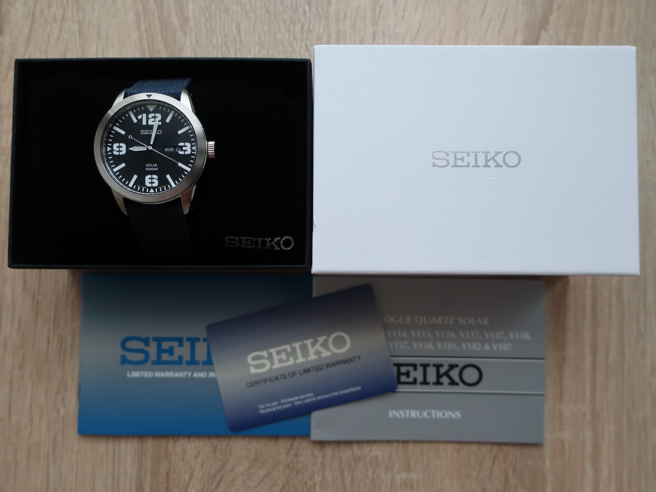 Кварцевый трехстрелочник на калибре V158, SOLAR - зарядка от любого источника света с запасом хода до 300 дней в темноте. Функция предупреждения о скором разряде батареи за 3 дня до полного разряда. Защита от перезаряда. День недели и дата. Стальной корпус. Минеральное стекло повышенной прочности Hardlex. Темно-синий циферблат с арабскими цифрами, Люм LumiBrite на стрелках и метках, темно-синий нейлоновый ремень. Расстояние между ушками 22мм. Завинчивающаяся задняя крышка. Водозащита: 10 bar, 100 meters (330 feet). Диаметр: 43мм.Толщина: 11мм. Вес: 68г.