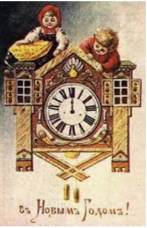 Часы на старых открытках
