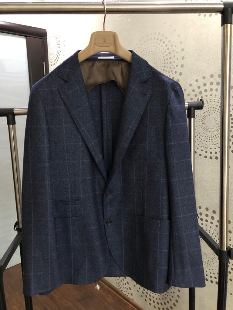 Новый бесподкладочный пиджак подчёркивает непринуждённый характер и ценные материалы в классическом стиле.Уместной практически в любой ситуации стала мужская одежда ,содержащая клетчатый рисунок.Утончённость фланели из натуральной шерсти в мелкую точку объединяется с фирменным фасоном Brunello Cucinelli:облегающий крой в области корпуса и немного расширенные плечи для демонстрации красоты и силы мужской фигуры.Свойство фланели объединять тепло и мягкость с лёгкостью и комфортом делает эту ткань ценной и универсальной.Плетение нитей,окрашенных в синих тонах сезонных оттенков,украшает ткань характерной текстурой в мелкую точку.Пиджак в клетку-актуальный предмет гардероба,который всегда выглядит эффектно,практично и стильно.