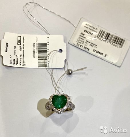 Кольцо из белого золота с изумрудом. ЯшмаЗолото