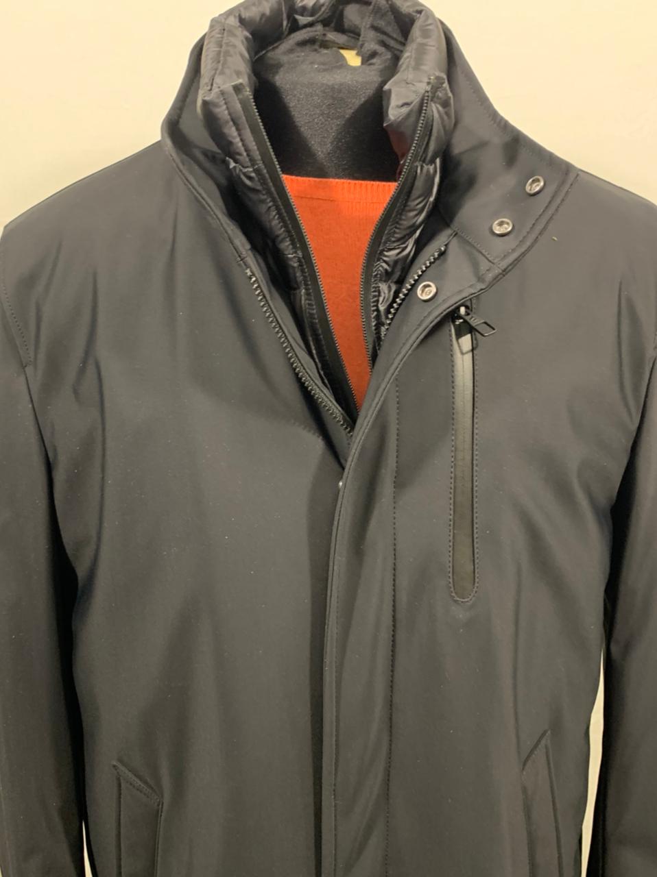 Продается новая утепленная мужская куртка бренда MONTECORE превосходного исполнения, EXCLUSIVE EDITION, плотная ткань не продуваемая, не промокаемая, антрацитового цвета, логотип, воротник-стойка, в котором скрыт капюшон, отстегивающаяся ветрозащитная планка, застегивается на «не закусывающую» молнию с двойным ходом и кнопки, фурнитура с логотипом бренда, куртка простегана внутри, утеплена, боковые прорезные карманы , один нагрудный карман на «не закусывающей» молнии, два внутренних кармана на молнии, разрез сзади, шлица на кнопке, состав: 42% полиэстер , 36%полиамид,13% эластан, 9% полиуретан, гарантированный 100 % оригинал, размер 56(IT), производство Италия