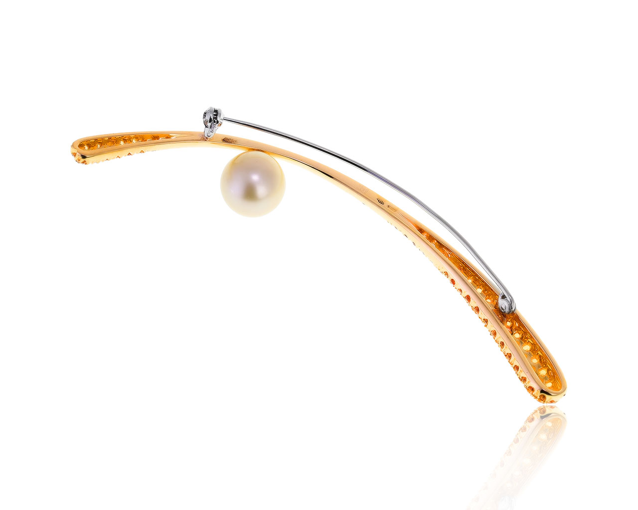 Представляем вашему вниманию оригинальную золотую брошь с золотистым жемчугом 11.80 мм, бриллиантами 0.55ct и желтыми сапфирами 1.80ct от всемирно известного бренда Stefan Hafner.
