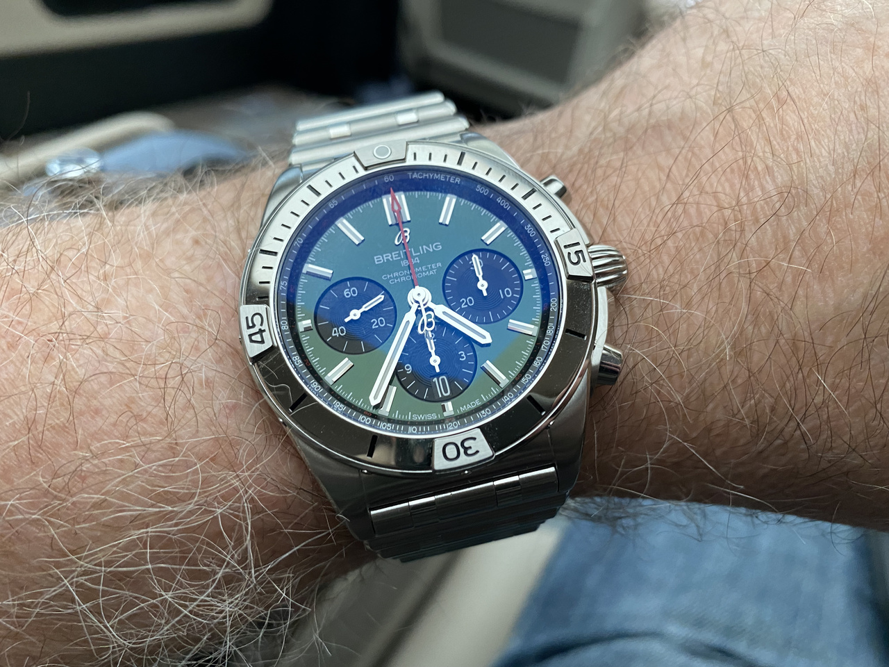 Очень высокая «читаемость» цифера. Наконец-то можно увидеть дату. На 44 Хроно она чисто декоративная)). Тяжеленькие и толстенькие. Запястье не огибают совсем. Браслет - бомба!