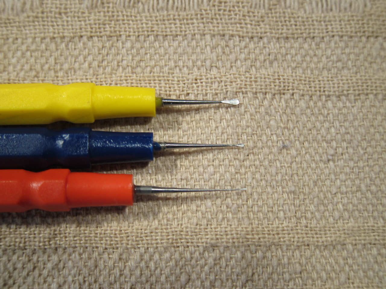 14. Маслодозировки, набор 3 шт. - 400 р. (в наличие - 1 шт.) Ширина лопаточек, приблизительно - желтая 0.8 мм, синяя 0.5 мм, красная 0.27 мм. На этих маслодозировках, именно, лопаточки, а не цилиндрические утолщения, как на китайских. В комплекте желтая, синяя, красная маслодозировки, колпачки и чехол.