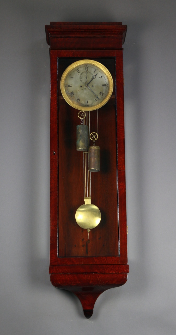 Реставрация часов включала в себя укрепление футляра и восстановление его фанеровки шпоном красного дерева, очистка механизма от ржавчины и восстановление хода. Гири пока решено было оставить как есть, хотя, наверное, они также будут подвергнуты небольшой очистке от окислов. Фото часов до реставрации также приложил.